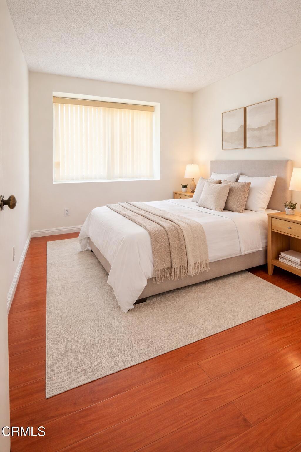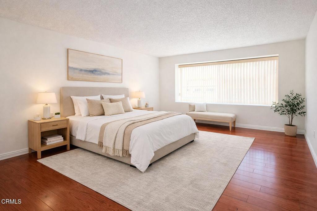 This fresh painted stunning 2 bedrooms and 2.5 baths condo located in a nice community within the highly rated Arcadia school district. Features of this two levels condo offered South facing entry, Engineered wood flooring throughout. Perfect size kitchen with many cabinet space and granite countertops, Along with stainless steel appliances including a gas range, refrigerator, dishwasher. The dining area is adjacent to a stackable washer & dryer and next to a powder room. Brightly and large size living room with sliding doors that open to the front patio. All bedrooms are on upstairs, A large size primary bedroom featuring an ensuite bathroom. gated two car side by side parking with storage rooms. Conveniently located near the supermarkets, restaurants, a golf course, schools and shops. Some images have been virtually staged. The furniture and decor shown are not included and are for illustrative purposes only.