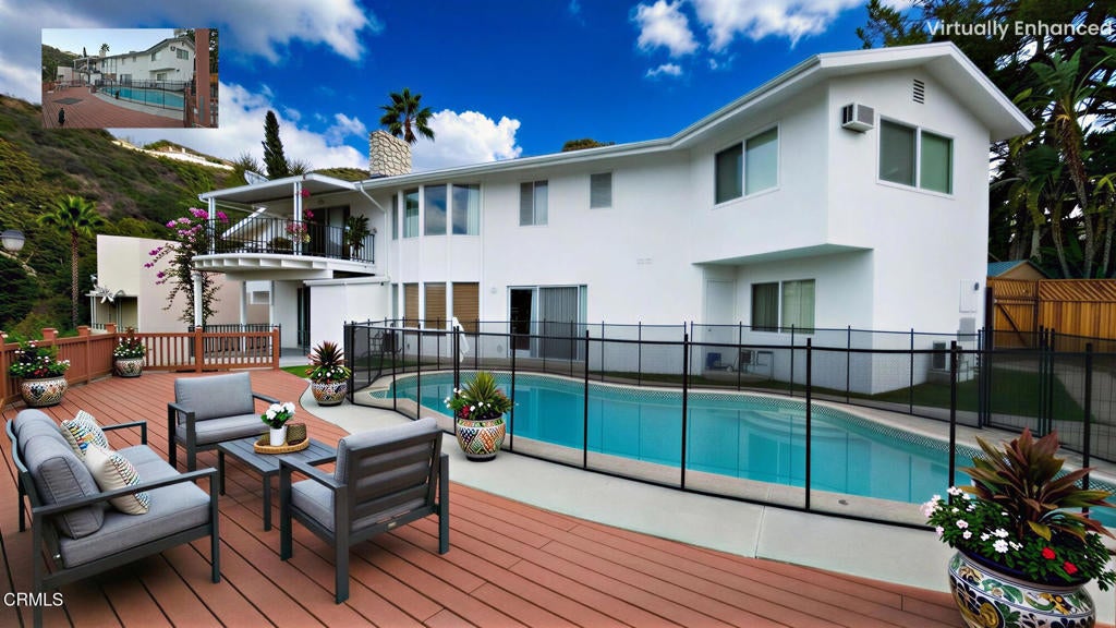 **Prime Chevy Chase Canyon Location!** This one-owner mid-century home, offers a rare opportunity to own a truly unique property. Featuring solid bones ready for cosmetic updates. The home includes a new electrical panel, fresh paint and new carpet. Sale is AS-IS This homes layout supports **multi generational living** or sectioning off a portion with it's own entrance for ADU like rental income. In addition to the main living areas, there is over 330 square feet of bonus space: a finished basement, a finished stand-up crawl space. This was part of the original construction, not an addition. A fourth bathroom in an auxiliary building is conveniently located near the pool area. (bonus rooms not included in the square footage-See floor plans). Enjoy **two balconies**, a **spacious pool deck**, and endless possibilities to customize and add value. A property with this location, uniqueness, and potential is a rare find--don't miss this exceptional opportunity.