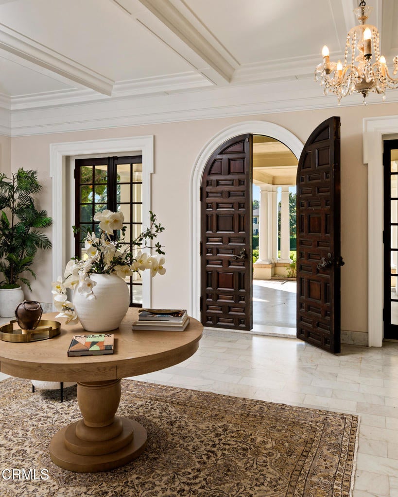 //Charles A Goodyear House, 'Knollcrest' by G. Lawrence Stimson, 1913// Built in 1913 for lumber baron Charles Goodyear and his wife, Henrietta, Knollcrest occupies 2.5 acres (Lots 18 and 19) within the original Oak Knoll subdivision. Widely regarded as one of the finest homesites in the development, its commanding position atop a gentle knoll--overlooking a sweeping front lawn--earned the estate its enduring name. //The residence was designed by prominent architect G. Lawrence Stimson, best known for the Wrigley Mansion. It is said that Goodyear commissioned the home, in part, to incorporate his extensive collection of custom-made furnishings and artifacts, resulting in a structure conceived to be entirely fireproof. Original wrought-iron gates frame the estate's 330' frontage along Oakland Ave, connected by a circular drive culminating in a porte-cochere. A rare secondary driveway, running N/S with automatic gate, is accessed via Allendale Rd. //True to Stimson's architectural language, the main residence features stately mahogany-paneled public rooms w/10' ceilings, upper-level bedrooms w/9' ceilings, hand-carved moldings, marble flooring and staircase, and living room w/restored Caucasian walnut floors accented by ebony inlay. Remarkably, much of the original woodwork and artisan-crafted built-ins remain intact and in exceptional condition. Living space spans three levels, with additional attic area above. //A secondary structure--recently updated w/full kitchen and BA--serves as a guest house, adjacent to garage w/BA, and pool. In total, Knollcrest comprises 8,713 sf of living space across all structures, complemented by an additional 5,087 sf of garage/storage space. //Following the Goodyears, the estate was stewarded by a succession of prominent families, including U.S. Steel president Thomas Cole and department store scion and philanthropist Samuel Robinson, before being acquired by the current owner in 1966. In 1968, Knollcrest was selected as the 4th Pasadena Showcase House and has since served as the backdrop for numerous motion pictures. //Defined by its rich history, architectural pedigree, prominent setting, and intact original acreage, Knollcrest stands among Pasadena's landmark estates. Offered for the first time in six decades, it represents a rare opportunity to steward a significant Los Angeles family estate for generations to come.
