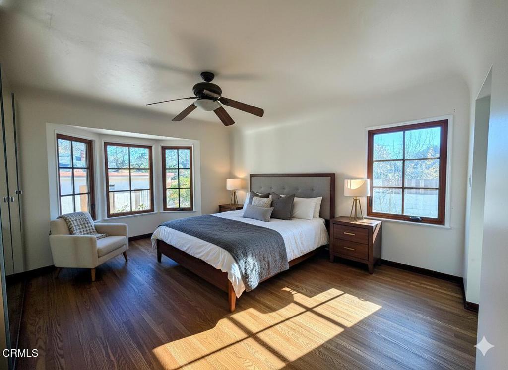 Elegant and beautifully maintained 1936 Spanish-style residence offering 3 bedrooms and 2 bathrooms with approximately 1,684 sq ft of refined living space on a generous 9,831 sq ft lot. The home features abundant natural light, hardwood floors, and one original window with subtle stained glass detail. A detached, freshly painted studio provides exceptional flexibility for a private office, creative retreat, or guest space (not included in the bedroom count). Tenants will enjoy the home's very clean condition, numerous recent upgrades, new windows, spacious grounds, mature landscaping, excellent curb appeal, and the convenience of a two-car garage. Photos 6, 8, 17, 19, 20 are digitally altered with AI