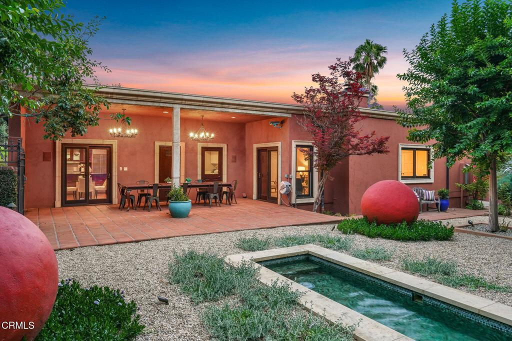 With its stunning architecture, coveted address in Upper Linda Vista, and beautifully-designed outdoor spaces, 1897 Braemar Rd is a secluded Pasadena treasure for those with discerning taste. Designed by esteemed Bel-Air architect Aleck Dugally, whose clients included Sylvester Stallone, Denzel Washington, and Sumner Redstone, this Contemporary Tuscan Villa stands apart with inspired details and a deeply peaceful setting. A grand foyer with a soaring ceiling offers an exquisite welcome. Sunlight pours in from the massive skylight overhead, illuminating the sumptuous travertine floors and offering a prelude to the elegance that awaits within. You'll instantly appreciate how Dugally's semi-open concept layout strikes the perfect balance between spaciousness and separation. The foyer adjoins both the dining room on the right and the sunken living room, which rests straight ahead. The latter offers the perfect setting for an intimate concerto or book reading. A chef-worthy kitchen features a cork floor, top-tier German appliances, and gorgeous wood cabinets. Wrapped in windows and boasting a radiant skylight, this dream kitchen overlooks the breakfast area-your sunlit spot for mindful mornings. Casual relaxation is always on offer in the inviting family room, which includes a large fireplace that creates the perfect ambiance during the winter months. Two bedrooms share a dual-vanity hallway bathroom, while the expansive primary suite is privately tucked on its own wing. This serene retreat is complete with a luxurious spa bath, walk-in closet, and French doors opening to the patio. Step out to your secluded outdoor haven shaded by a Walpole pergola and offering stunning views of the lush greenery in the canyon below. As beautiful as the home's interiors are, its outdoor spaces are equally impressive with expansive patios and decks wrapping all around. The main backyard space showcases modern art in a gorgeous natural setting, with striking abstract sculptures and a statement water feature set amidst lush plantlife. Additional outdoor amenities include a fireplace and numerous lounging areas. The attached two-car garage includes a workshop and an 800-bottle wine cellar to house your collection. A one-of-a-kind residence that imbues your days with beauty and peacefulness, 1897 Braemar is not to be missed.