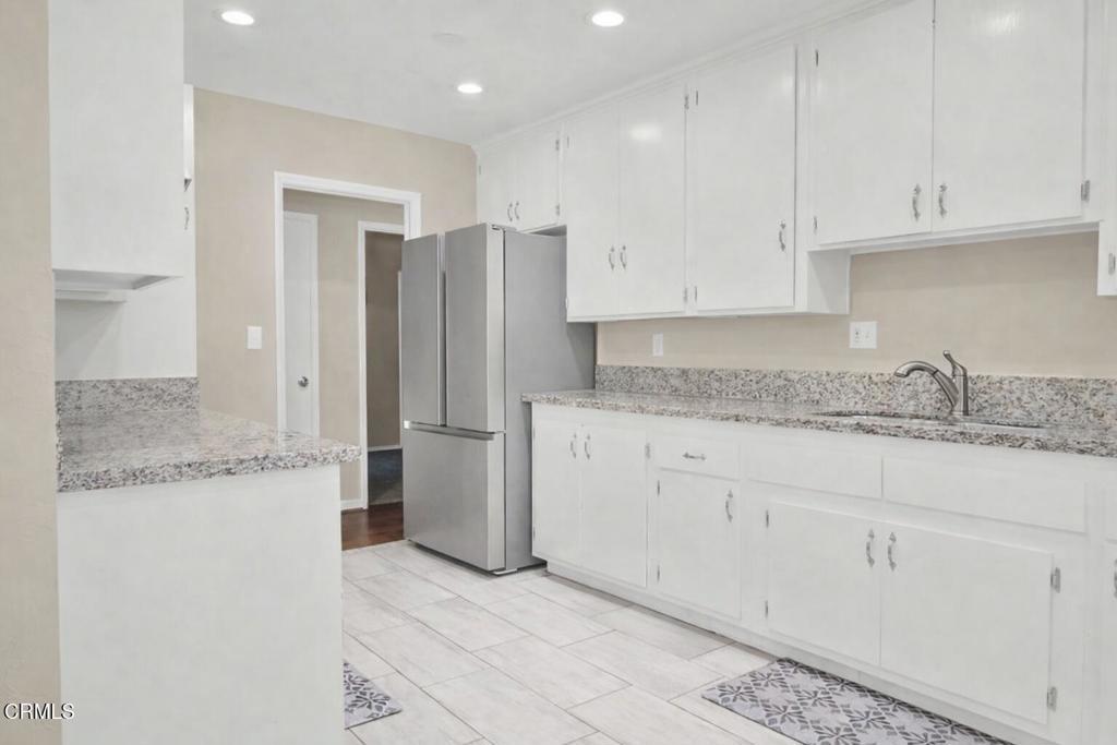 DON'T MISS THIS ONE! Absolutely beautiful 3-bedroom home in a highly desirable area, just minutes from the freeway! This home features gorgeous wood-like laminate flooring and a stunning river rock stone fireplace in the living room, creating a warm and inviting space.The remodeled kitchen is a showstopper with upgraded appliances, tile flooring, and granite countertops, perfect for cooking and entertaining. All bedrooms are comfortably carpeted, and the updated bathrooms include a convenient 3/4 bath off the primary bedroom.You'll love the hallway laundry area, a nice office nook off the living room, and a large enclosed patio with tile flooring--not permitted and not included in the 1,301 sq. ft., but done beautifully and ideal for extra living or entertaining space.The lot is larger than normal, offering a huge rear yard with plenty of room to relax, garden, or add future possibilities, plus a wood shed for extra storage.HURRY--this one won't last! Must see today
