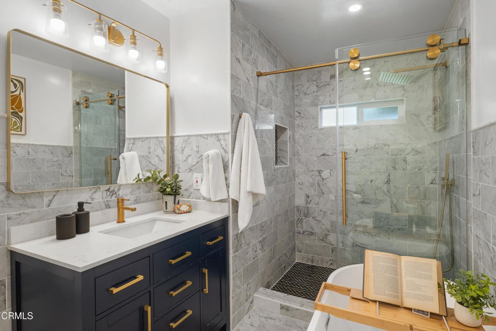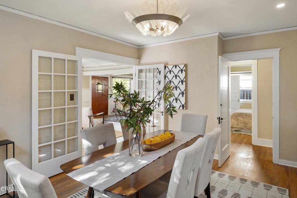 NEW PRICE--This exquisite three bedroom, two bath, 1923 square foot, 1915 Craftsman Airplane Bungalow, with an office and bonus crafts room or an additional study, has been lovingly remodeled and restored throughout. The house, built by Walter A. Waldlock, is an idyllic reflection of the arts and crafts movement while still offering a welcoming floor plan for entertaining or for enjoying the best of the California lifestyle. The interior is filled with period grace and details including hardwood floors, wide baseboards, rich wood moldings, crossbeam ceilings, artisan woodwork, elegant lighting, as well as custom built-ins, all reflecting the majesty of the era. As you step up to the wide, inviting porch, you are beckoned in via a stately front door that leads into the expansive living room with a central fireplace framed by two sets of French doorsallowing the light to stream in. From there you enter the formal dining room that has a charming bump out that houses a majestic antique sideboard. This adjoins the sun-lit,impeccably renovated kitchen, with high-end appliances, gleaming cabinetry, an oversized two-sided farmhouse sink and stunning quartzite counters. There are three spacious bedrooms with two bathrooms that have been beautifully updated with marble tile, aged brass treated fixtures and gorgeous vanities all while remaining in keeping with the architecture of this highly desirable style. Additionally, there is a breakfast area and laundry room or multi-purpose space that steps out to the deep backyard. The lovely rear yard offers spaces for celebrating with friends or for quiet dinners under the stars. The 6,751 square foot lot, with a verdant lawn, is a pleasure to behold. The residence showcases picture-perfect curb appeal and is located in the celebrated Bungalow Heaven Historic district which has been cited as one of the best neighborhoods in America. There are tours of the magnificent homes that line the shade dappled avenues. Don't miss this true Pasadena architectural treasure in this sought-after community!