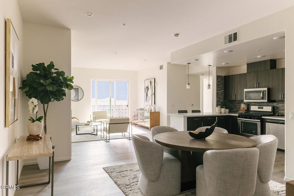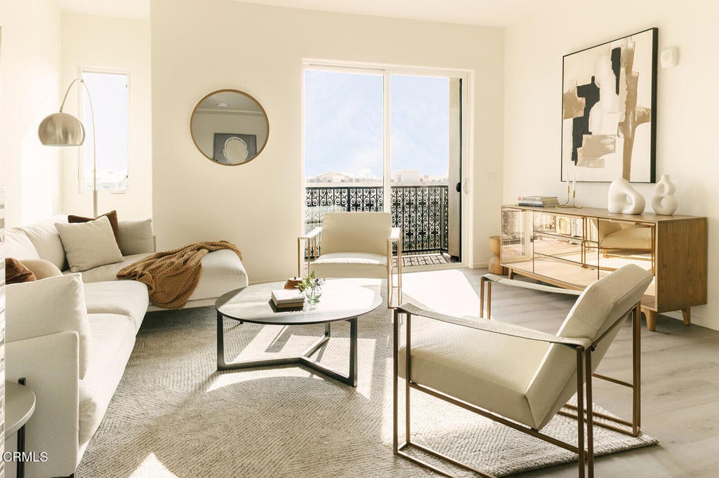 3th floor bright & spacious condominium home in the vibrant downtown Glendale directly across the street from the iconic Americana at Brand. Suite #302 is one of the featured condominium homes in the phase One Release of the Verdara subdivision, originally built in 2017. Verdara, a collection of luxury boutique residences inspired by the European lifestyle, spanning street to street, this five-story condominium community offers an array of 1-, 2-, 3-, and 4-bedroom floorplans. A stylish Parisian-inspired lobby welcomes you with classic marble floors, timeless wainscoting, and a prestigious front desk, setting the tone for refined city living. Verdara features 50 thoughtfully curated residences, each designed with modern open-plan layouts, 11 penthouses with soaring ceilings, oversized windows, and an abundance of natural light. Residence 302 features 2 bedrooms, 2 bathrooms, open floorplan, balcony, overlooking Elk Avenue with views to Downtown LA. Select first-floor homes include private patios with convenient access to the lobby, fitness center, and resident lounge, while private balconies extend living spaces into the energy of the city beyond Verdara's tranquil grounds. Residents enjoy exceptional amenities, including the exclusive indoor/outdoor Resident's Lounge, surrounded by lush greenery and complete with a full kitchen, long bar, and modern fireplace ideal for entertaining or relaxing evenings. The private fitness center is fully equipped for both cardio and strength training. Additional conveniences include gated subterranean parking with ample guest spaces, a secure package room, and front desk. Perfectly situated in one of Southern California's most vibrant destinations, Verdara provides immediate access to premier shopping, dining, and culture, with effortless connectivity to the I-5, the 134, Downtown LA, and the best of LA. Additional floorplans available starting price ranges $655,000 to $2,055,000.00. Suite #302 has inside the unit laundry, walk in closet, open living room and dining room, 2 car garage. Seller Financing is currently available to qualified buyers.