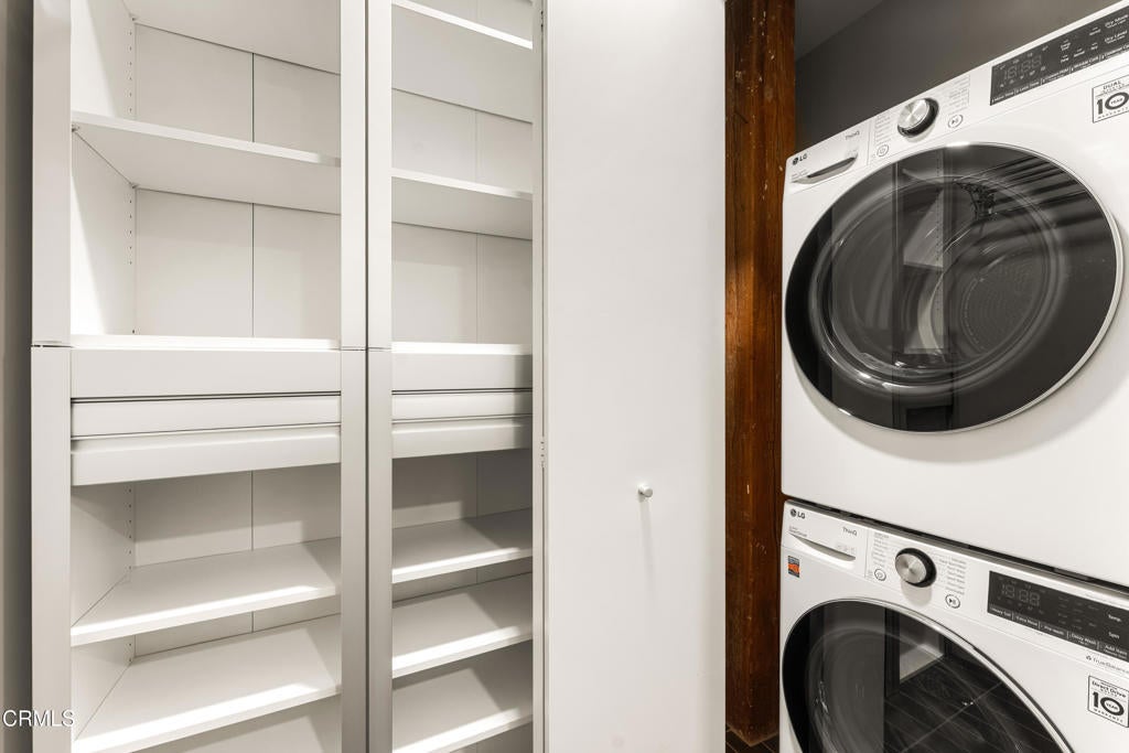 TOP-FLOOR Loft with Iconic Bridge & Mountain Views -- First Time Available for LeaseThis light-filled residence features a dramatic wall of floor-to-ceiling double-paned windows showcasing sweeping views of the 4th and 6th Street bridges and mountains. The expansive open layout is complemented by a striking concrete wall, an open kitchen with stainless steel appliances and an island, in-unit stackable laundry, and an abundant amount of storage with six or more wardrobe closets plus additional bathroom storage. Accent lighting adds warmth and ambiance throughout. Residents enjoy resort-style amenities including a rooftop pool and spa, fire pits, cabanas, BBQ areas, and a fitness center. The loft includes one designated parking space in an attached gated garage, an on-site HOA manager, and 24/7 security. Ideally located across from Arts District Park and moments from acclaimed dining, coffee houses, galleries, and Metro access, this loft offers the ultimate vibrant Downtown LA lifestyle.