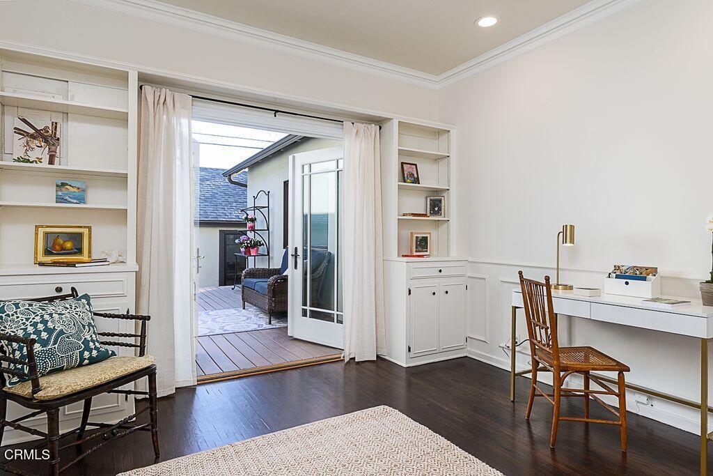Chapman Woods provides the beautiful backdrop for this delightful 1927 English Revival single-level residence. Meticulously maintained & upgraded for modern living & gracious entertaining, the home blends period character with today's amenities. Surrounded by a private walled garden, the landscaping was designed to offer serene patio & garden views from three sides. Enter through the front gate & be transported to a world of European elegance, complemented by a California-inspired drought-tolerant front garden. The home features double French doors from the dining room, kitchen & second bedroom--inviting indoor-outdoor enjoyment of the east patio & south-facing deck throughout the day. The living room is distinguished by dramatic 11-foot coved ceilings, a gas-log fireplace & multi-pane windows. An arched entry leads to the expansive dining room, complete with a skylight & additional seating area, flowing seamlessly to the east patio--perfect for alfresco dining. Hardwood floors grace many of the rooms. (Prior owner removed the closet in middle bedroom, adding built-ins, creating an inviting home office option with view to the deck; the closet could easily be restored.) Enhancements include dual-pane Pella windows & doors, Hunter Douglas woven blinds, central A/C & custom built-ins. The cook's kitchen, with a bay window, offers high-end stainless-steel appliances plus a breakfast area with double doors opening to the outdoors. An oversized laundry room presents exciting possibilities--create a kitchen/family room, mudroom or design additional storage. The primary suite offers an oversized bathroom & closet. At the rear of the property, a separate bonus room with exposed-beam ceilings, new sliding doors & its own A/C wall unit offers endless flexibility--ideal as a wellness studio, creative space, home office or add a bathroom & create the perfect ADU, plus you still have a two-car garage, equipped with automatic opener + ready for EV installation. Home measurements: 2185 SF + 305 SF bonus room/studio (both taped). Tax Assessor shows 2162 SF. (Buyers to verify to their satisfaction.) With enchanting curb appeal, generous proportions, rich architectural details & thoughtful upgrades, this home offers an opportunity to own a Pasadena Classic, just moments from the Caltech & San Marino neighborhoods + all that Pasadena has to offer. Love where you live...3364 Yorkshire presents an easy place to enjoy privacy & a lock and go lifestyle!