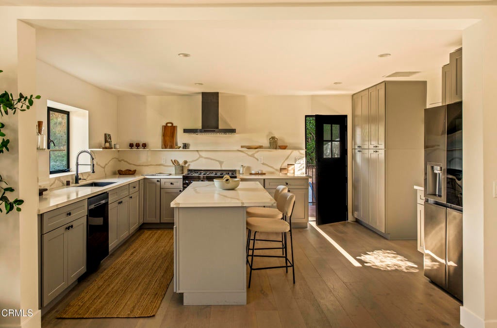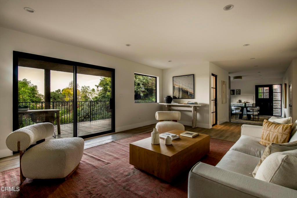 Perched in Beachwood Canyon with breathtaking city views, 2994 Durand Drive has been renovated with the utmost care and attention to detail. With a total of 4171 square-feet, featuring a 3-bedroom 2-bathroom main home of approximately 2976 square feet, and a separate lower-level 2-bedroom 1-bath ADU/guest-suite of about 1195 square feet, perfect for extended family, guests, or rental income opportunities, with multiple balconies and covered patios. Inside the main home, the living area is bathed in natural light, with striking Downtown views from nearly every room, showcased through new steel windows and doors throughout. Steel sliding patio doors open out to a spacious balcony perfect for al-fresco dining. The open kitchen features an island and plenty of cabinetry, including a floor-to-ceiling pantry cabinet, brand new appliances, and wide-plank oak hardwood flooring. The oversized garage has direct access into the main home. Two bedrooms occupy the first floor and share a full hallway bath, complete with tub/shower combo and dual sink vanities. A laundry closet and storage closet complete this level.Upstairs, the massive primary suite has a fireplace, walk-in closet, reading nook with picture window, luxurious bathroom with walk-in shower with two shower heads, dual-sink vanities, and a private balcony perfect for stargazing or enjoying a morning coffee.The separate 2-bedroom 1-bathroom guest suite/ADU with its own entrance features a spacious, open floor-plan with a kitchen, living room which opens out to a private balcony. A spacious laundry room off the kitchen offers lots of storage space and a side-by-side washer and dryer. Additional features: oversized 1-car garage, driveway parking, and street parking directly in front of the home. New central HVAC units for the main house and ADU, with extensive upgrades throughout. This property presents a unique opportunity for a variety of living arrangements, and is just up the hill from Beachwood Village, minutes from Lazy Acres Market, and numerous hiking trails.