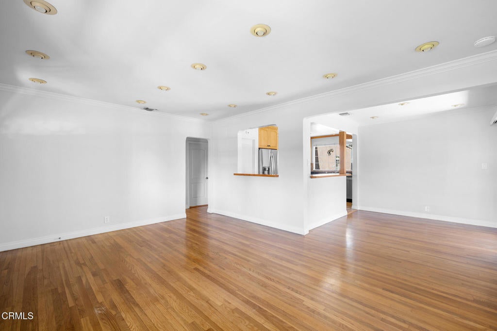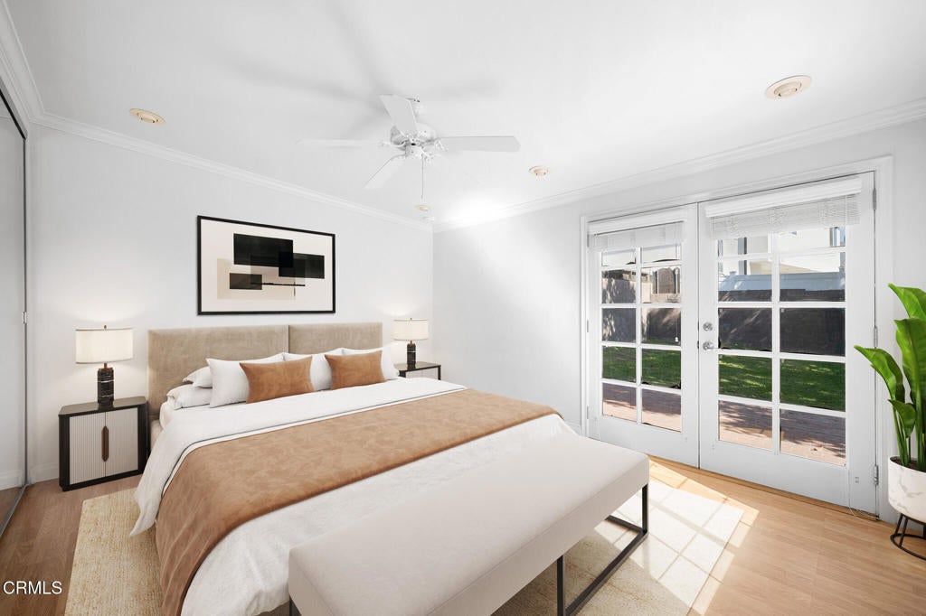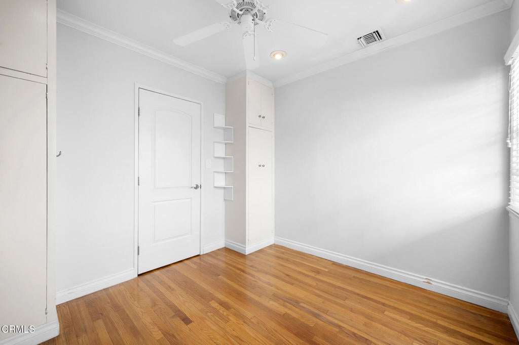 Situated in the Burbank hills above Glenoaks, this impeccably maintained three-bedroom ranch-style bungalow offers a seamless blend of classic charm and modern updates. The sun-drenched interior features gleaming hardwood floors, recessed lighting, and energy-efficient ceiling fans in every bedroom, complemented by an elegant, Tuscan-inspired bathroom sanctuary with a glass-enclosed dual-head shower and wide double-sink vanity. The kitchen features beautiful granite countertops, elegant tile backsplash, stainless steel appliances, and ample cabinetry. The heart of the home flows through glass doors in the dining area to an expansive covered patio, while the primary suite features French doors leading to a private, open brick patio--both overlooking a backyard oasis anchored by a magnificent, mature avocado tree and vibrant fruit trees. Complete with a 2-car garage featuring extensive built-in storage, this residence provides a serene retreat just minutes from the hiking trails of Stough and Wildwood Canyons, the recreational amenities of McCambridge Park and Brace Canyon Park, and premier shopping and dining at the San Fernando Village, Burbank Town Center, and Burbank Empire Center. With easy access to major studios and Burbank's award-winning schools, this home captures the quintessential California lifestyle in one of the city's most sought-after pockets.