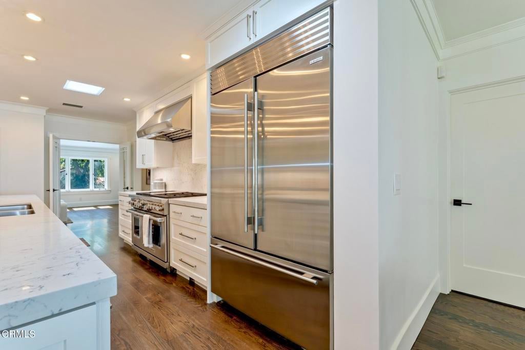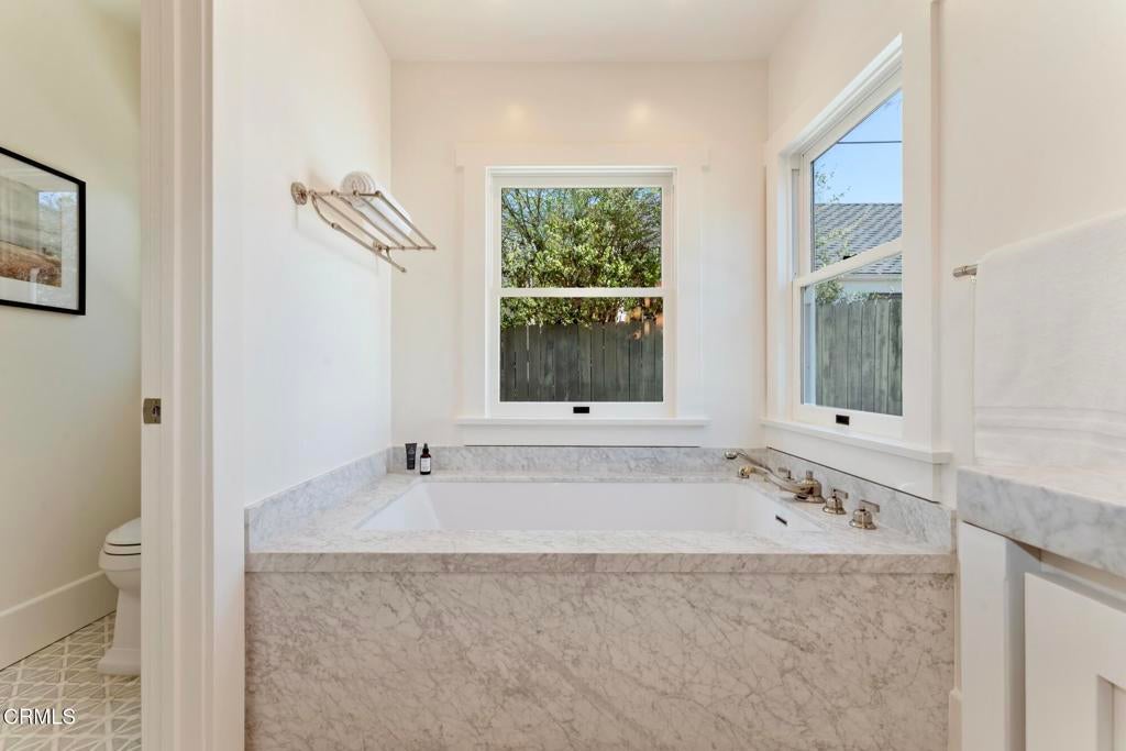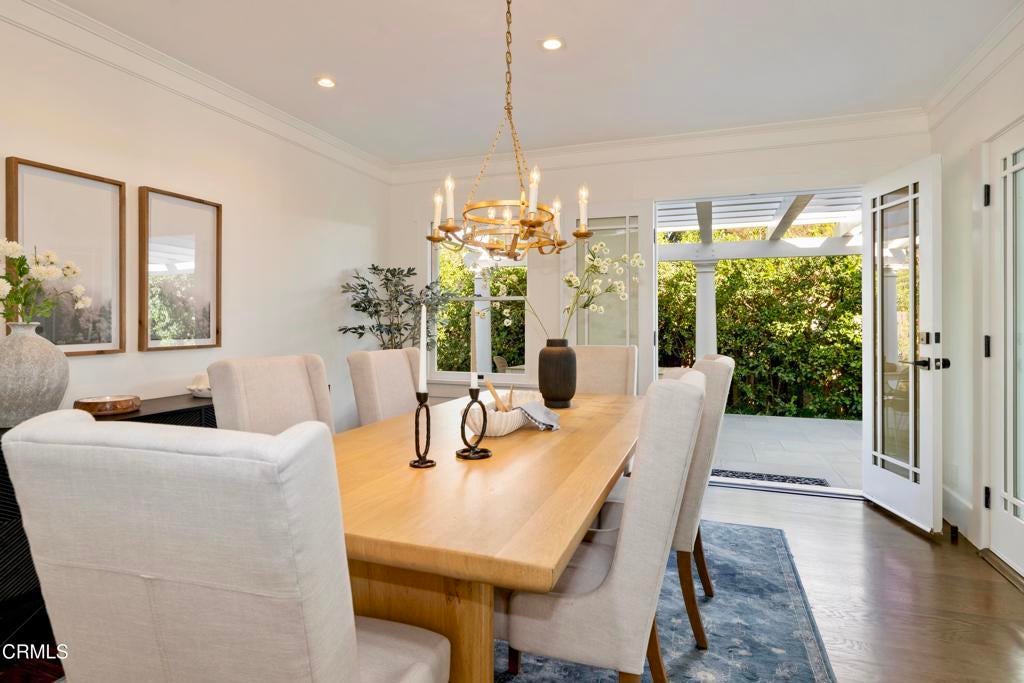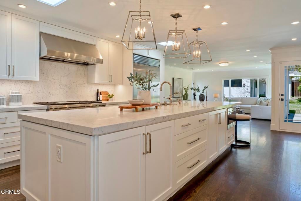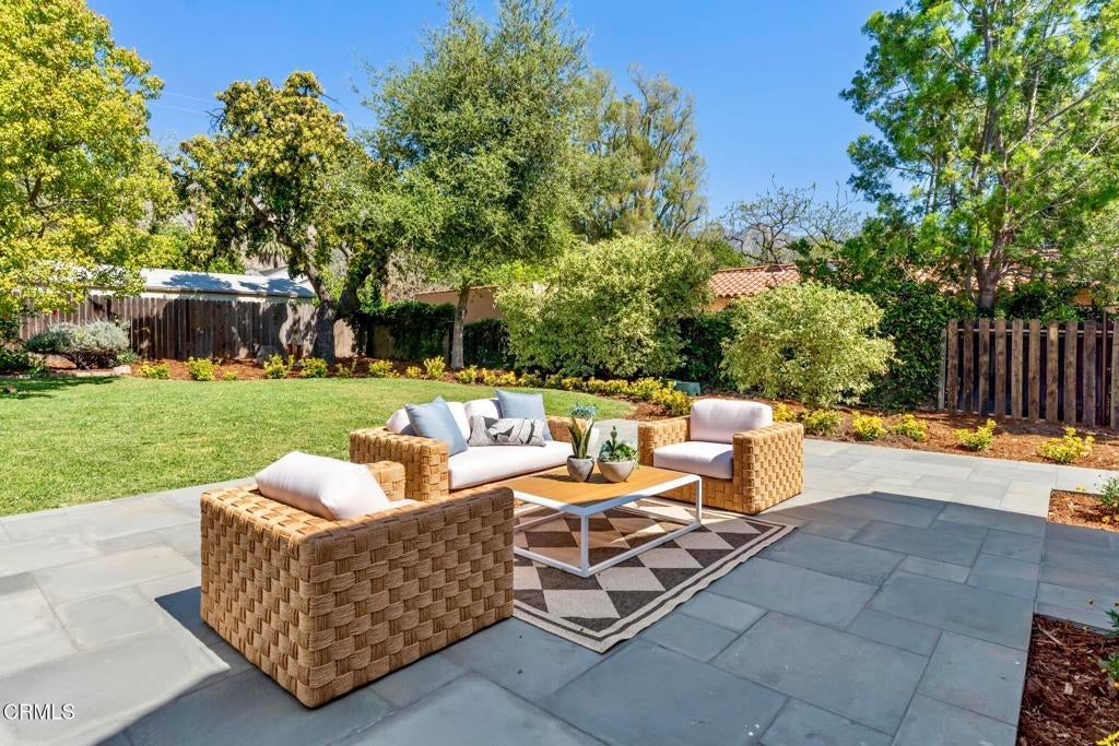 Nestled in the highly sought-after Altadena Country Club neighborhood, just steps from the historic Altadena Golf Course, there stands this stunning one-story Colonial Revival residence. Built in 1917, the home sits majestically on an expansive, beautifully landscaped lot spanning 13,860 square feet. This charming home underwent a comprehensive remodel in 2018, executed with a thoughtful eye toward enhancing and preserving its original architectural character. You'll find the warmth of hardwood floors, large baseboards, and elegant crown moldings. Large, plentiful windows and multiple French doors flood the interior with natural light and fresh air that define the home's open, airy aesthetic.The heart of the home features a grand Living Room and a Formal Dining Room, both designed for entertaining. French doors provide a seamless transition from these formal spaces to a newly expanded outdoor terrace. The 1,200 square foot Bluestone patio is ideal for hosting intimate gatherings or large celebrations.The home boasts four generous bedrooms. The Primary Bedroom Suite is a private sanctuary, featuring an en-suite bath with Carrera marble countertops, gleaming polished nickel fixtures, tub, marble stall shower, heated marble tile floor, separate toilet room, and a spacious walk-in closet. Two additional bedrooms access the hall bathroom. The fourth bedroom, off the kitchen, has a private bathroom and can be closed off as its own suite. The centerpiece of daily life is the spacious gourmet Kitchen with Caesarstone counters and a striking center island measuring over 13 feet long. The Kitchen is equipped with top-of-the-line Sub-Zero and Wolf appliances and opens to the Breakfast Area and Family Room. A separate laundry room with a stainless-steel laundry sink and abundant custom cabinetry adjoins this space. The property features a gated driveway leading to a two-car garage. There is an attached permitted accessory space, which, if combined with the garage, has the potential for an ADU conversion of over 780 SF. The modern infrastructure boasts new HVAC equipment, a new tankless water heater, a whole-house water conditioning system, and a grid-connected solar power system paired with two Tesla Powerwall 2 batteries.With 2,990 square feet in the main residence and an additional 280 square feet in the separate accessory space, 1351 Sonoma offers a rare combination of historic elegance, luxurious amenities, and modern practicality.
