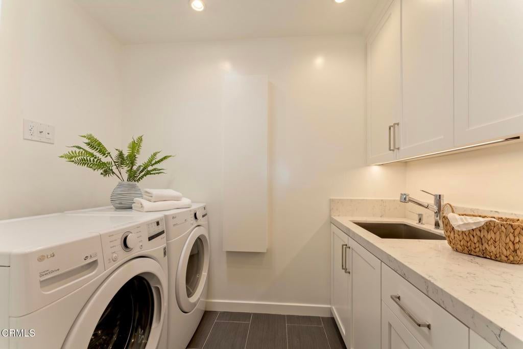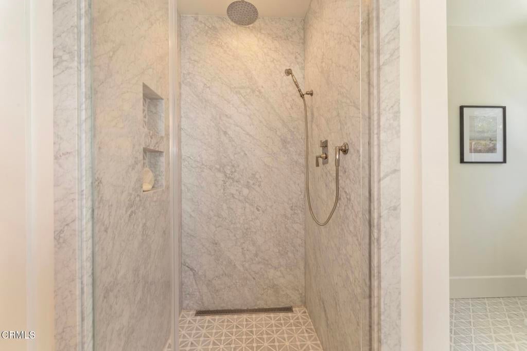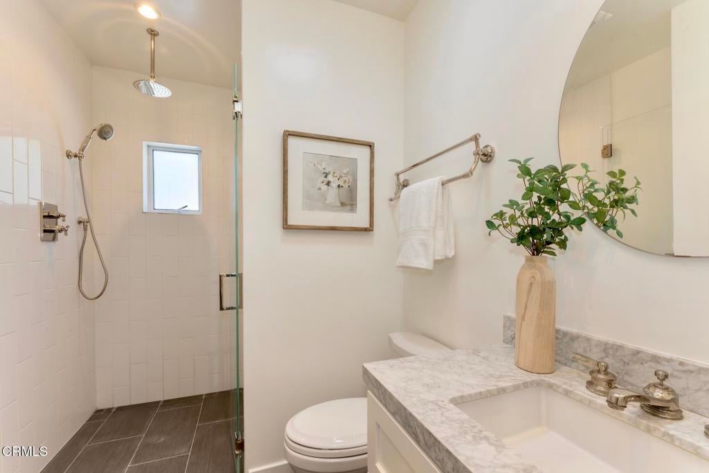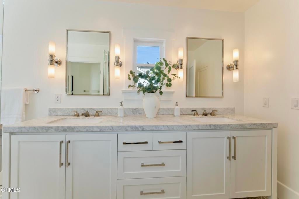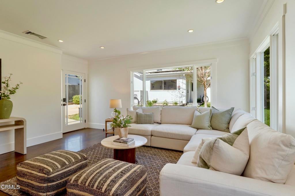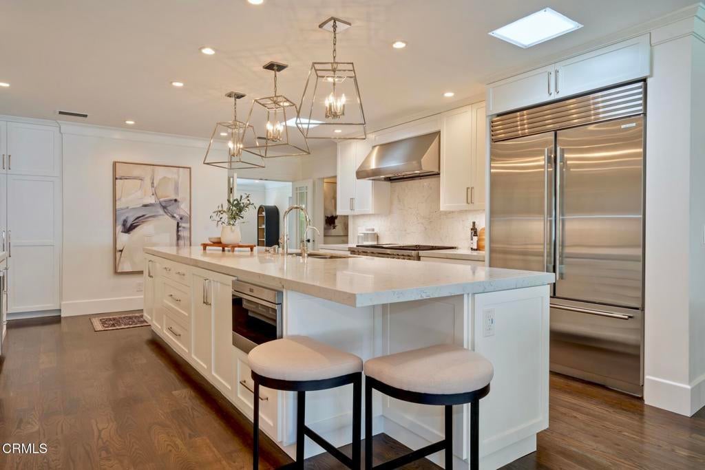 Nestled in the highly sought-after Altadena Country Club neighborhood, just steps from the historic Altadena Golf Course, there stands this stunning one-story Colonial Revival residence. Built in 1917, the home sits majestically on an expansive, beautifully landscaped lot spanning 13,860 square feet. This charming home underwent a comprehensive remodel in 2018, executed with a thoughtful eye toward enhancing and preserving its original architectural character. You'll find the warmth of hardwood floors, large baseboards, and elegant crown moldings. Large, plentiful windows and multiple French doors flood the interior with natural light and fresh air that define the home's open, airy aesthetic.The heart of the home features a grand Living Room and a Formal Dining Room, both designed for entertaining. French doors provide a seamless transition from these formal spaces to a newly expanded outdoor terrace. The 1,200 square foot Bluestone patio is ideal for hosting intimate gatherings or large celebrations.The home boasts four generous bedrooms. The Primary Bedroom Suite is a private sanctuary, featuring an en-suite bath with Carrera marble countertops, gleaming polished nickel fixtures, tub, marble stall shower, heated marble tile floor, separate toilet room, and a spacious walk-in closet. Two additional bedrooms access the hall bathroom. The fourth bedroom, off the kitchen, has a private bathroom and can be closed off as its own suite. The centerpiece of daily life is the spacious gourmet Kitchen with Caesarstone counters and a striking center island measuring over 13 feet long. The Kitchen is equipped with top-of-the-line Sub-Zero and Wolf appliances and opens to the Breakfast Area and Family Room. A separate laundry room with a stainless-steel laundry sink and abundant custom cabinetry adjoins this space. The property features a gated driveway leading to a two-car garage. There is an attached permitted accessory space, which, if combined with the garage, has the potential for an ADU conversion of over 780 SF. The modern infrastructure boasts new HVAC equipment, a new tankless water heater, a whole-house water conditioning system, and a grid-connected solar power system paired with two Tesla Powerwall 2 batteries.With 2,990 square feet in the main residence and an additional 280 square feet in the separate accessory space, 1351 Sonoma offers a rare combination of historic elegance, luxurious amenities, and modern practicality.