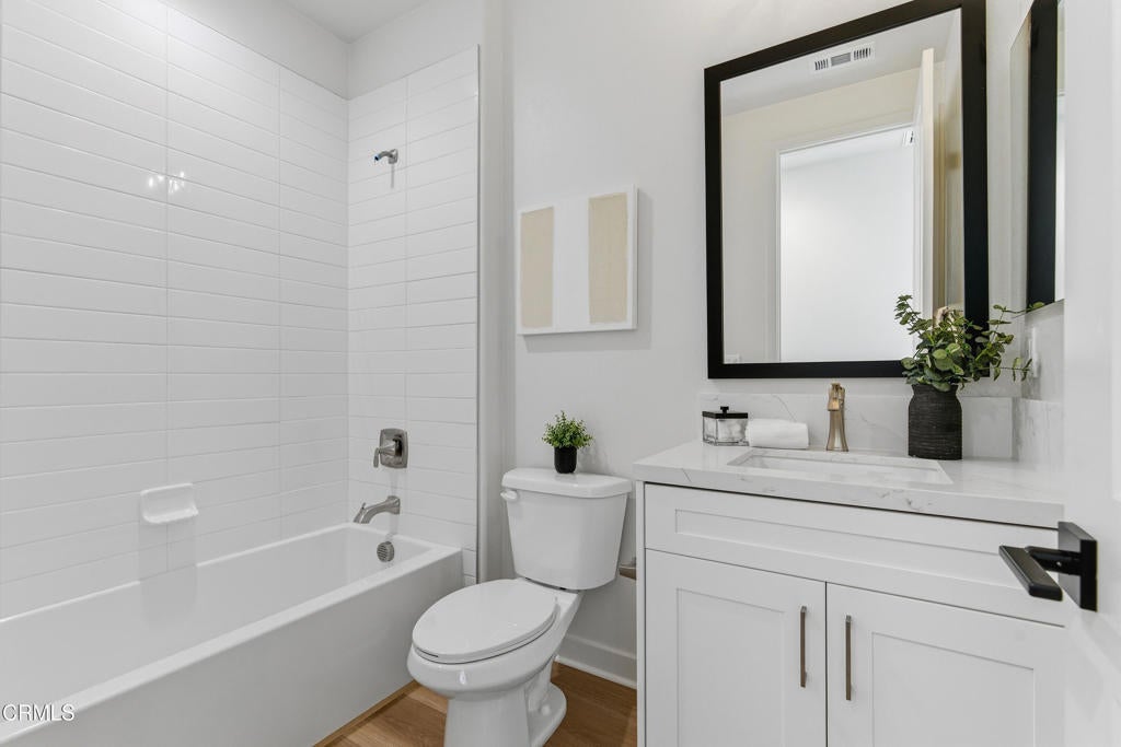 Seller will entertain offers between $1,699,990-$1,799,990. Brand New Single Level Home, Ready for Move In! The rebirth of Altadena begins here! Ask about Builder Financing Incentives. Thoughtfully crafted by New Pointe Communities, this exceptional new single-level modern farmhouse hosts 4 spacious bedrooms, 3 full bathrooms and a stylish powder room for guests, this residence blends modern design with timeless comfort. The well-appointed chef's kitchen features Dacor stainless steel appliances including a built-in refrigerator, gas range, and under-counter microwave. A large quartz-topped center island anchors the space and flows seamlessly into the great room, highlighted by a vaulted ceiling and triple-panel sliding doors that open to a peaceful outdoor sitting area with incredible views to the DTLA skyline and westerly sunsets. The primary suite features a generous walk-in closet, separate tub and custom tiled shower surrounded in glass. Additional upgrades and amenities include a tile roof, base solar system, and an inviting layout ideal for both everyday living and entertaining. This is a rare opportunity to own a brand new home in a highly desirable Altadena neighborhood, where craftsmanship, design, and location come together effortlessly. Built with a fire-forward mindset, this Altadena foothills home pairs modern design with real-world resilience. Concrete tile Class A roof over Polyanchor XFR underlayment, ember-resistant O'Hagin vents, and noncombustible stucco/fiber-cement siding help defend against embers and radiant heat. Tempered Avanti windows, seamless aluminum gutters with leaf guards, steel return fencing near the house, and hardscape-driven, professionally designed landscaping all support defensible-space guidelines while keeping day-to-day maintenance low.Beautifully positioned on a private cul-de-sac across from Charles Farnsworth Park and just a few blocks from the Sam Merrill Trailhead to Echo Mountain, this is truly the quintessential Altadena location. The builder provides a 1-year fit and finish and a 10-year structural warranty. Ask about incentive packages.