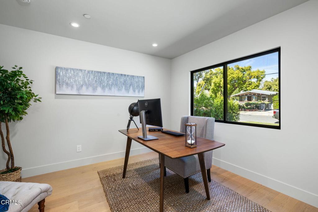 This is a rare opportunity to own a newly redesigned home in one of Pasadena's most coveted neighborhoods, just moments from the iconic Arroyo Seco and its renowned recreational amenities. Nearly every element of the home has been thoughtfully rebuilt from the ground up retaining only a small portion of the original foundation and framing, resulting in a beautifully crafted four-bedroom, four-bathroom residence designed for modern living. The open floor plan was created with entertaining in mind. The kitchen, dining area, and living room flow seamlessly together, filled with natural light from expansive windows that create a bright and welcoming atmosphere for gatherings large or small. A versatile front room flex space offers the perfect setting for a fourth bedroom, private office, or creative studio ideal for today's work-from-home lifestyle. Each of the three spacious bedrooms are en suite offering comfort and privacy for family members or guests. The large primary suite is a serene retreat designed for relaxation. A warm and cozy sitting area overlooks the private deck and spacious backyard perfect for unwinding with evening tea or quiet reflection. The spa-inspired bath features a luxurious sunken soaking tub, creating the perfect place to relax before retiring for the evening. Outside, the private deck opens to a generous backyard ideal for al fresco dining, entertaining, or simply enjoying Pasadena's beautiful weather. There is ample room for outdoor gatherings, gardening or play. High-end finishes and thoughtful upgrades are showcased throughout the home. The chef's kitchen is equipped with premium appliances from Thermador. A well-appointed galley laundry room includes extensive cabinetry, generous counter space, plus a utility sink. The home features entirely new electrical wiring, plumbing lines, and a new sewer line. Comfortable indoor air quality is ensured by a new heat/air system from Bosch and dual-pane windows throughout. The roof is also new, as is the detached garage. Outdoor enthusiasts will appreciate the home's close proximity to the trails and open space of Arroyo Seco, as well as nearby destinations including Kidspace Children's Museum, Rose Bowl Stadium, Rose Bowl Aquatics Center, Brookside Park & Golf Course plus other popular sites. With its thoughtful design, extensive upgrades, and prime Pasadena location, this exceptional home offers the perfect blend of modern comfort and timeless appeal. Schedule your private tour today.