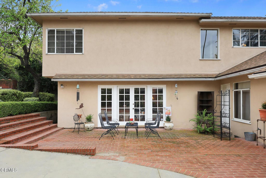 Located in Pasadena's coveted South Arroyo neighborhood near Mayfield Senior School, this two-story traditional home offers timeless charm and generous living space. The versatile floor plan features four bedrooms, including two on the main level. Abundant French doors create wonderful natural light and seamless indoor-outdoor flow to the brick patio, ideal for entertaining. The expanded family room was added on in the 1980s when the 2nd story was added enhancing the home's spacious feel. The kitchen, remodeled in 1993 with quality cabinetry, offers excellent functionality, while the original baths are well maintained and ready for personalization. A permitted 340 sq ft bonus room behind the detached two-car garage provides flexible space for office, gym, or studio. Major upgrades include copper plumbing, replaced sewer line to the street, roof (2019), updated heater ducts, and brick patio and concrete driveway (2008).