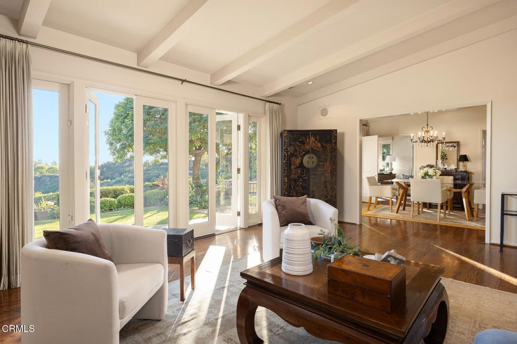 *Offer deadline Wednesday 3/18 at 5:00 pm.* Perched above Linda Vista and the Rose Bowl sits a hillside sanctuary with spectacular views that balances elegant charm with an airy design. The floor plan is thoughtfully zoned with a primary wing on one side, featuring large closets and a secondary adjacent bath, an additional bedroom with fireplace and built in desk, which could also be used as an office or library. Near the center of the house is an upper-level guest suite/office plus bathroom and private terrace with mountain views. The opposite wing of the house is an entertainer's dream. A formal living room, dining room, and den all flow into each other yet can also be separated into private spaces. The kitchen is set up with seamlessly built-in appliances, bar, ice maker, wine fridge, and pass-through counter. Behind the kitchen is a laundry room and powder room with access to the attached garage. The home culminates with an outdoor patio, built in speakers designed for entertaining, and set against the backdrop of the Pasadena skyline, downtown L.A. and the San Gabriel Mountains.