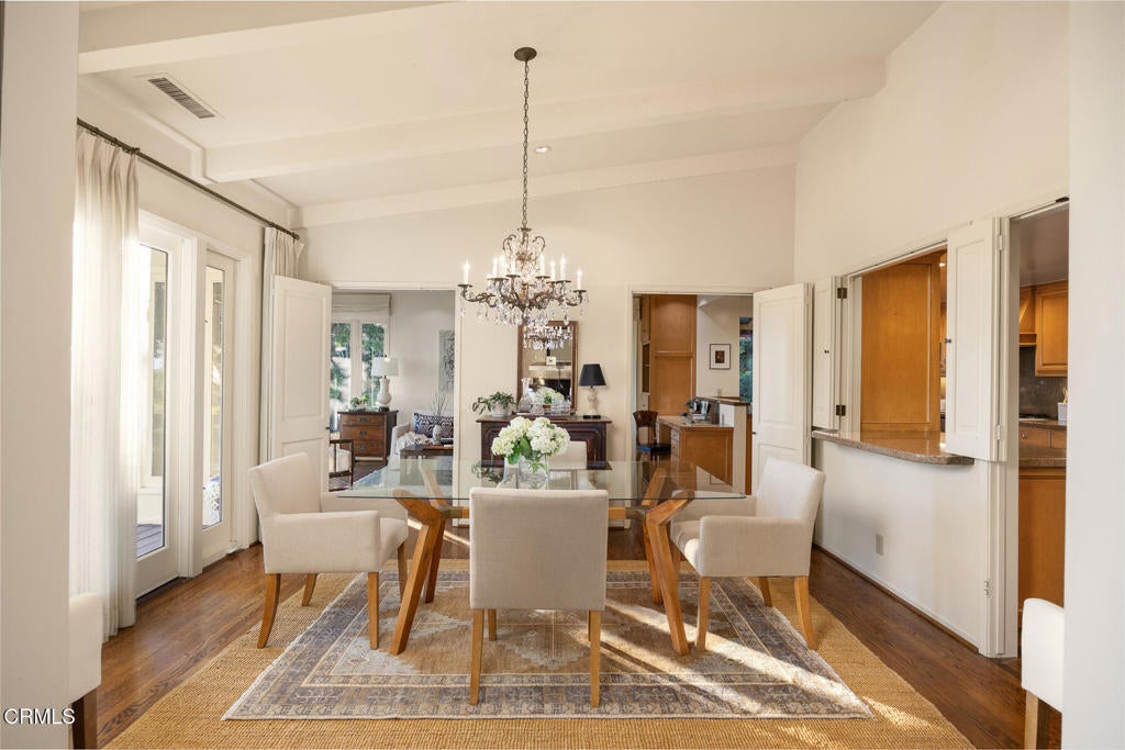 • Interior FeaturesBeamed Ceilings, Built-in Features, Separate/Formal Dining Room, Pantry, Recessed Lighting, Storage, Bar, Wired for Sound, Bedroom on Main Level, Dressing Area, Entrance Foyer, Main Level Primary, Primary Suite, Walk-In Pantry, Walk-In Closet(s), Central Vacuum