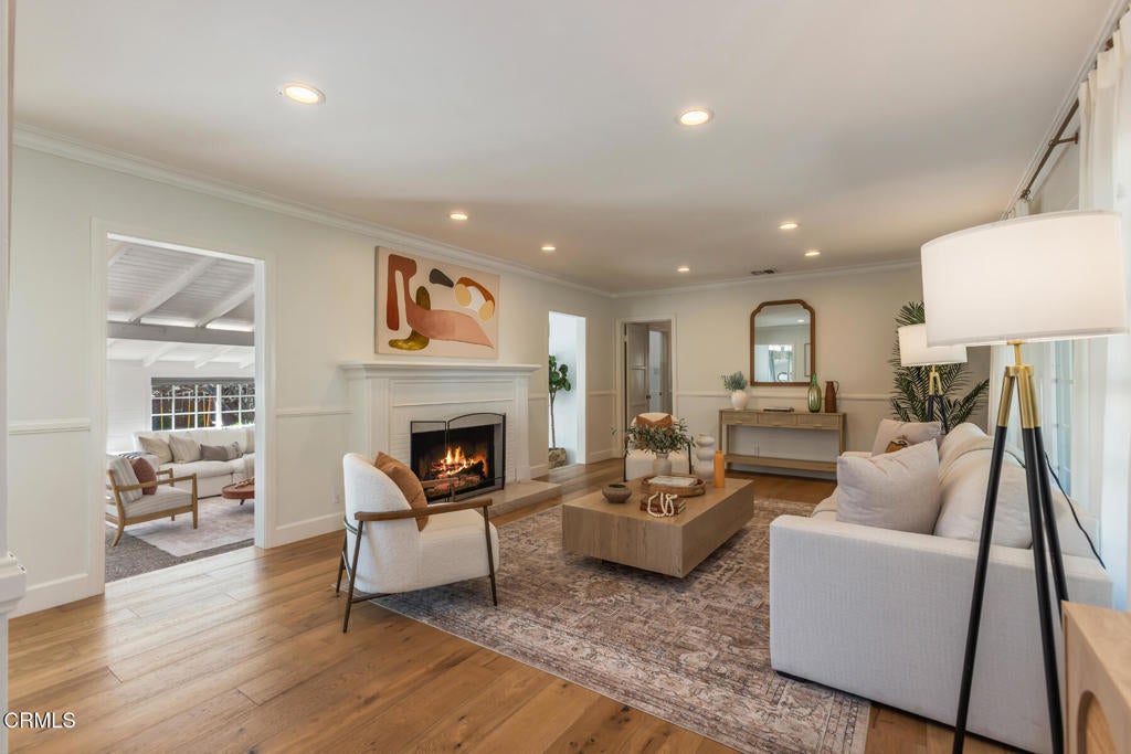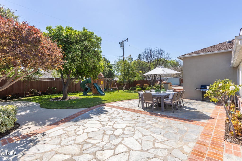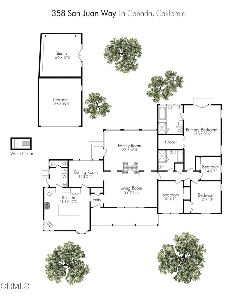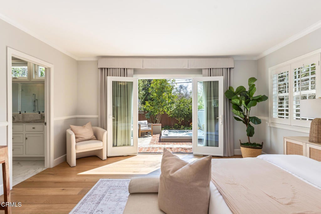 Like a page from a storybook, this traditional home greets you with timeless charm. Shaded canopy trees with an endearing swing, a floral-lined brick walkway, and a quintessential front porch create a first impression that is both warm and unforgettable. Inside, the living room captures peaceful views of the front yard, complemented by French oak wide-plank floors and a fireplace with a wooden mantel and leathered quartz hearth that anchors the space with comfort. Thoughtfully arranged living areas create a natural flow while maintaining a graceful sense of separation between rooms. Soaring vaulted ceilings with exposed beams highlight the bright kitchen, a natural gathering place offering abundant cabinetry, generous counter space, a utility sink, and an oversized leathered quartz island with bar seating, ideal for everyday living and hosting friends and family. Just beyond, a private bedroom wing hosts three well-appointed bedrooms and a shared bath with a glass-enclosed shower and separate tub. The spacious primary suite features French doors that open directly to the patio, where a new spa and tranquil backyard setting create a peaceful retreat. Tucked beneath the closet lies a delightful surprise: a wine cellar designed to house 175 bottles, quietly awaiting its next collection. Completing the suite, the primary bath includes a double vanity, jetted tub, separate shower, and built-in cabinetry. Framed by abundant windows, a gas fireplace and seamless access to the backyard, the sunken family room provides a comfortable space to gather and unwind. Outdoors, a fully fenced private backyard offers multiple seating areas, mature landscaping, fruit trees, and a children's play structure creating a charming setting for classic California afternoons. Versatility continues with a detached Bonus Room (additional 320 SF) featuring new French Doors with sidelights, wood-like flooring, new mini-split A/C unit and projector, well suited for a game room, home office, gym, or creative flex space. In the garage, built-in Craftsman cabinetry, a workshop counter, and durable drainage flooring tiles create a well-equipped space for projects and hobbies. Additional highlights include double-pane windows and recessed lighting throughout, central air and heat, an individual laundry room, convenient powder room, and EV plug. Located within the award-winning La Canada School District and just minutes from the heart of town, 358 San Juan is ready to welcome its next chapter.