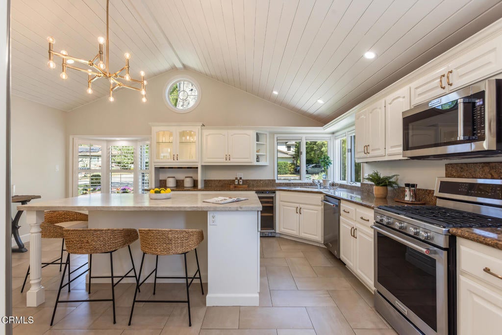 • Interior FeaturesBreakfast Area, Separate/Formal Dining Room, Eat-in Kitchen, Granite Counters, Pantry, Quartz Counters, All Bedrooms Down, Bedroom on Main Level, Main Level Primary, Primary Suite, Walk-In Closet(s), Beamed Ceilings, Breakfast Bar, Built-in Features, Cathedral Ceiling(s), Crown Molding, High Ceilings, Paneling/Wainscoting, Recessed Lighting, Wine Cellar