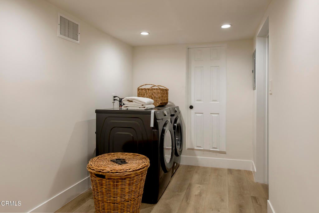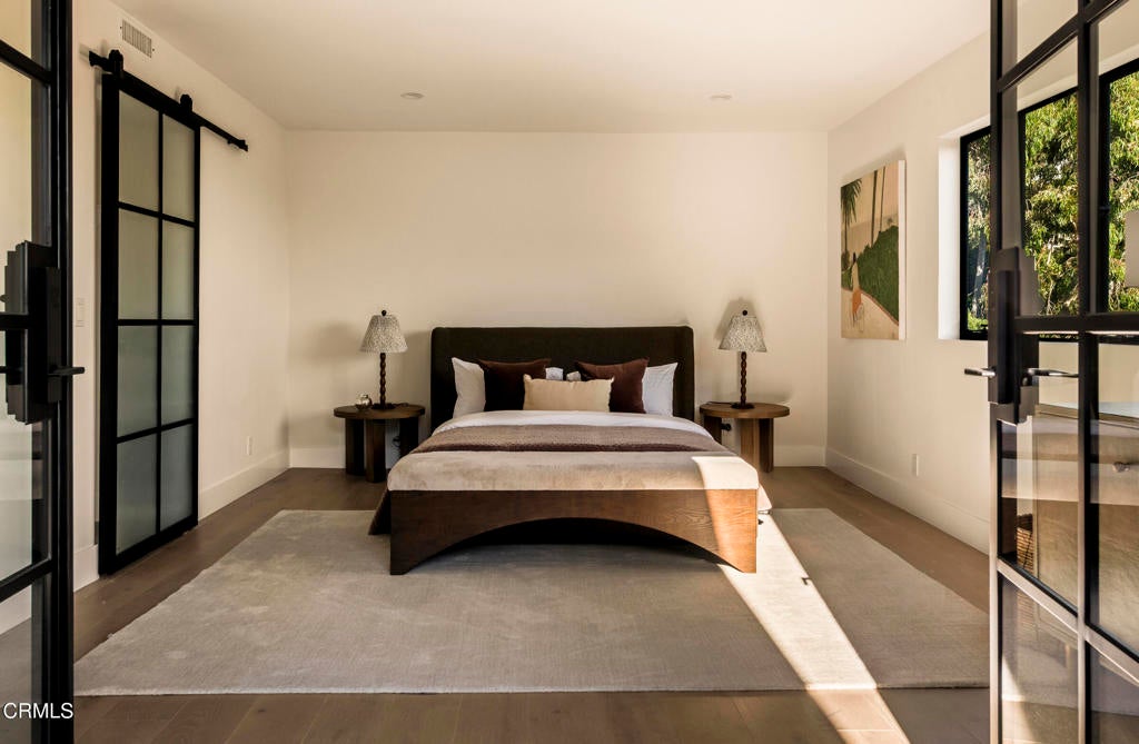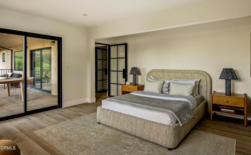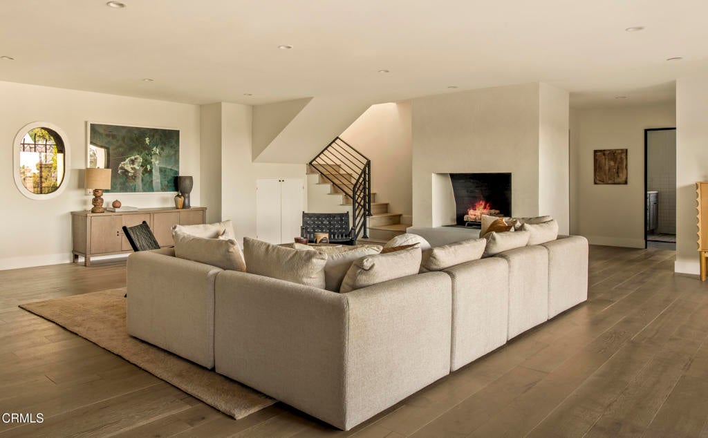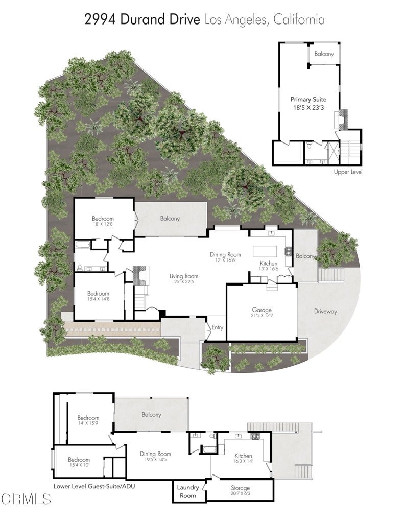 Perched in Beachwood Canyon with breathtaking city views, 2994 Durand Drive has been renovated with the utmost care and attention to detail. With a total of 4171 square-feet, featuring a 3-bedroom 2-bathroom main home of approximately 2976 square feet, and a separate lower-level 2-bedroom 1-bath ADU/guest-suite of about 1195 square feet, perfect for extended family, guests, or rental income opportunities, with multiple balconies and covered patios.Inside the main home, the living area is bathed in natural light, with striking Downtown views from nearly every room, showcased through new steel windows and doors throughout. Steel sliding patio doors open out to a spacious balcony perfect for al-fresco dining. The open kitchen features an island and plenty of cabinetry, including a floor-to-ceiling pantry cabinet, brand new appliances, and wide-plank oak hardwood flooring. The oversized garage has direct access into the main home. Two bedrooms occupy the first floor and share a full hallway bath, complete with tub/shower combo and dual sink vanities. A laundry closet and storage closet complete this level.Upstairs, the massive primary suite has a fireplace, walk-in closet, reading nook with picture window, luxurious bathroom with walk-in shower with two shower heads, dual-sink vanities, and a private balcony perfect for stargazing or enjoying a morning coffee.The separate 2-bedroom 1-bathroom guest suite/ADU with its own entrance features a spacious, open floor-plan with a kitchen, living room which opens out to a private balcony. A spacious laundry room off the kitchen offers lots of storage space and a side-by-side washer and dryer. Additional features: oversized 1-car garage, driveway parking, and street parking directly in front of the home. New central HVAC units for the main house and ADU, with extensive upgrades throughout. This property presents a unique opportunity for a variety of living arrangements, and is just up the hill from Beachwood Village, minutes from Lazy Acres Market, and numerous hiking trails.