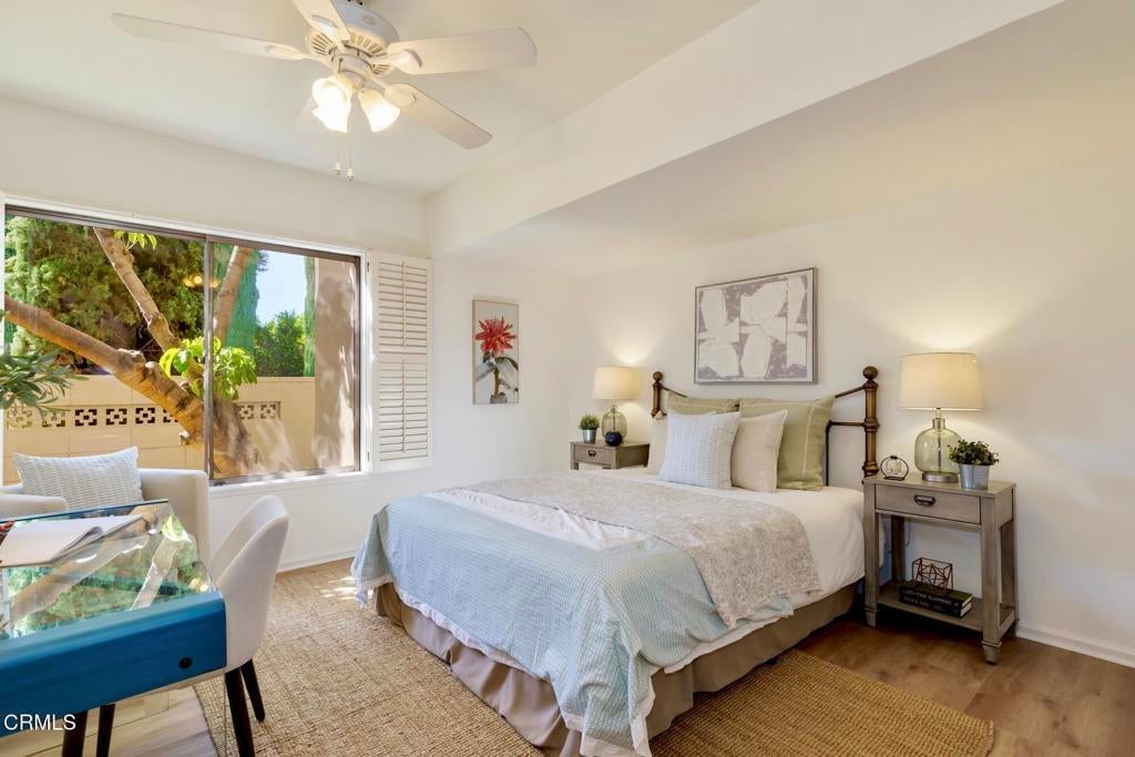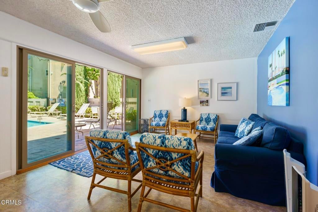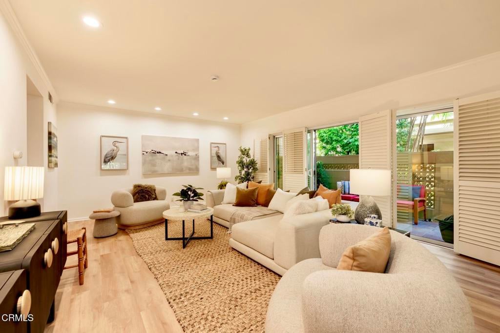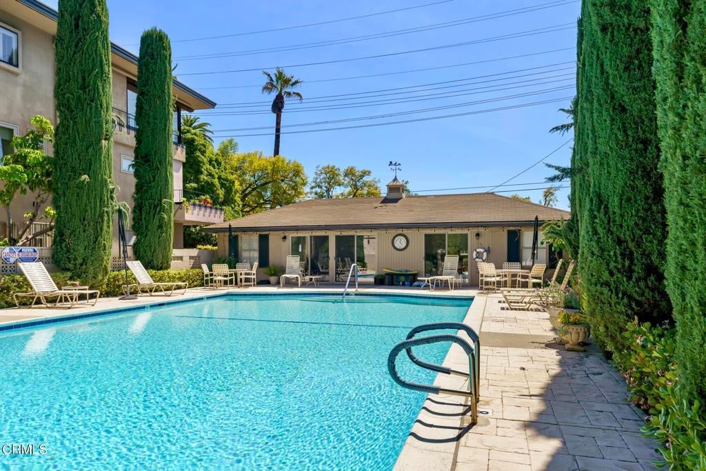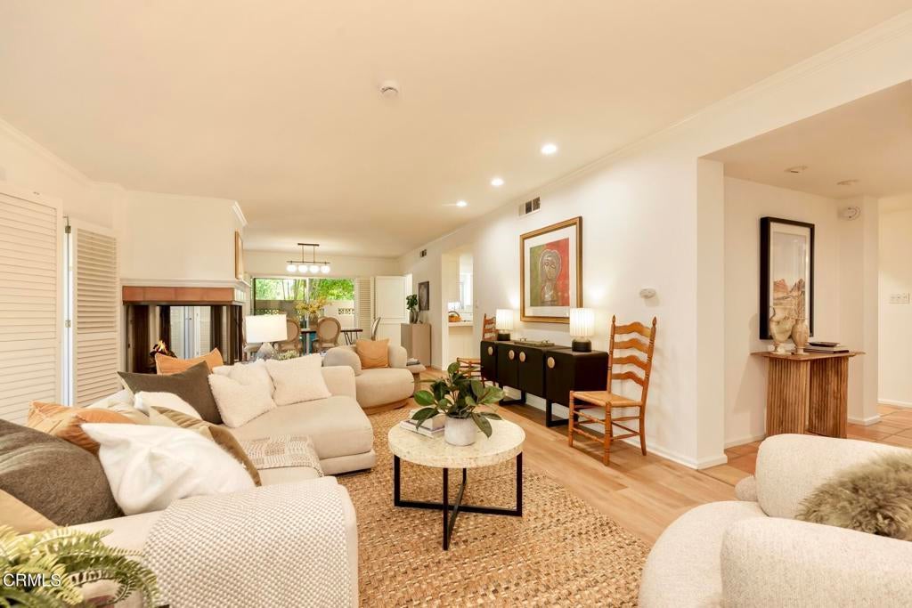 NO OPEN HOUSE SUNDAY 3/29! A Study in Mid-Century Modern Set quietly at the rear of a classic South Orange Grove enclave, this single-level residence reflects the enduring principles of mid-century modern architecture: clarity of design, effortless flow, and a deep connection to the outdoors.Clean horizontal lines and an open, intuitive floor plan create a sense of calm from the moment you enter. The main living space unfolds with purpose, anchored by a period fireplace and framed by walls of glass that dissolve into two private patios. Light, air, and garden views become part of the architecture itself, itself an essential hallmark of the era.The great room has a living and dining area that open to the private patios. The adjacent kitchen with breakfast bar flows into the family room, integrated yet distinct, offering flexibility. Privately situated, the primary suite is a quiet retreat-generous in scale, with direct access to its own secluded patio, where the indoor-outdoor dialogue continues. The large walk-in closet & ensuite bath are good sized. The laundry is tucked away on the enclosed patio. The second bedroom is thoughtfully set apart, allowing for guests, a workspace, or creative use without compromise.What sets this residence apart is not only its rare single-level layout, but the way it lives: uncomplicated, intentional, and connected. Two outdoor spaces extend the experience beyond the walls, while the tranquil setting enhances the sense of privacy and retreat.Nearby is the glorious pool with separate full sized cabanna that can be reserved for private parties. Complete with kitchen, living & dining area plus a library & 3/4 bath, this extends the living space beyond the unit itself. Separate HVAC and water heater are easily. accessible. The complex has excellent management. There are two parking places for this unit: one is covered and includes storage while the second is uncovered. Ease of access off Columbia. This is mid-century modern living as it was meant to be: refined, functional, and timeless.