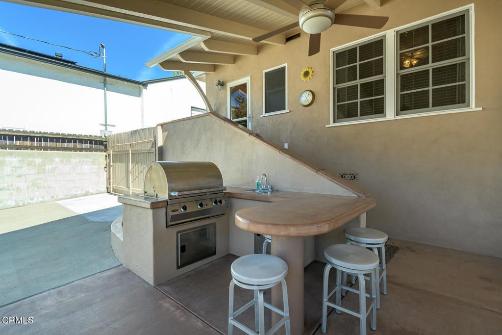 Nestled in the heart of La Crescenta, this beautifully maintained home perfectly balances modern upgrades with a welcoming, lived-in elegance. From the moment you arrive, the manicured, drought-resistant landscaping sets a serene tone that carries throughout the entire property. Step inside to a sun-lit living room where large bay windows invite the outside in, creating a bright and airy atmosphere for relaxing or entertaining. The thoughtful layout places all three bedrooms tucked away in their own wing for maximum privacy, centered around a recently remodeled main bathroom. The flow of the home is designed for effortless living; the dining area offers a cozy spot for morning coffee at the counter and opens directly into a well-appointed galley kitchen. Here, practical luxury takes center stage with reverse osmosis water filtration, a water softener, and smart earthquake-safe cabinetry. Beyond the kitchen, the backyard is a true California retreat. Imagine hosting summer gatherings under the expansive covered patio, kept cool by circulation fans, while grilling on your built-in stainless-steel barbecue. For those with a vision, the oversized three-car garage offers incredible potential for a guest house (ADU) or a high-end creative studio. With a newer roof, upgraded central AC, and premium storm doors already in place, this home is truly a turnkey sanctuary ready for its next chapter. (carpet has original hardwood underneath- buyer to verify)