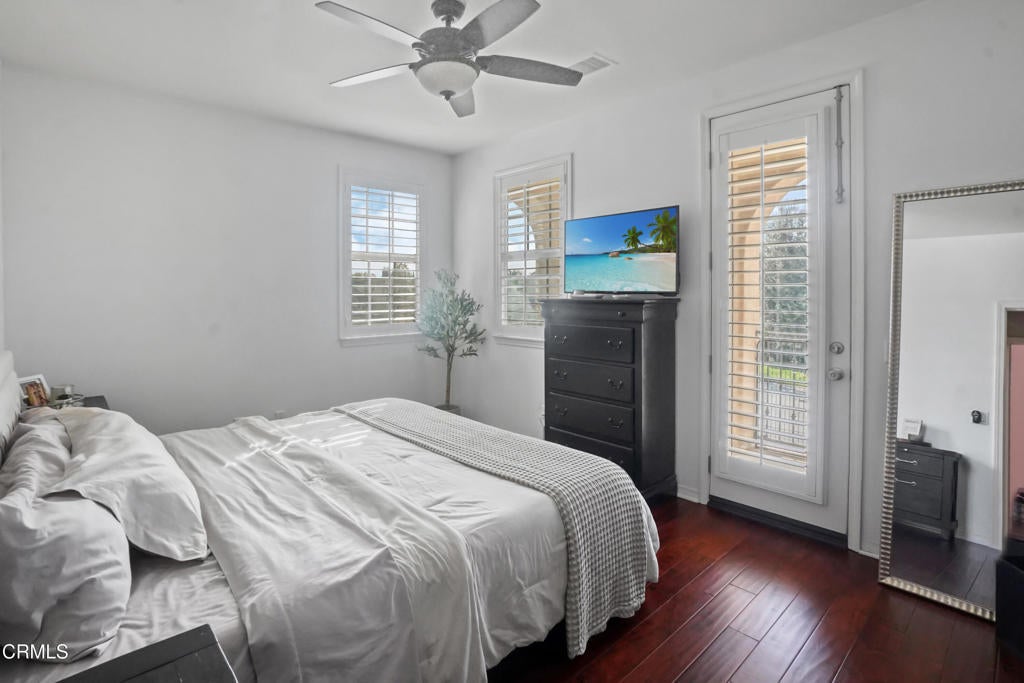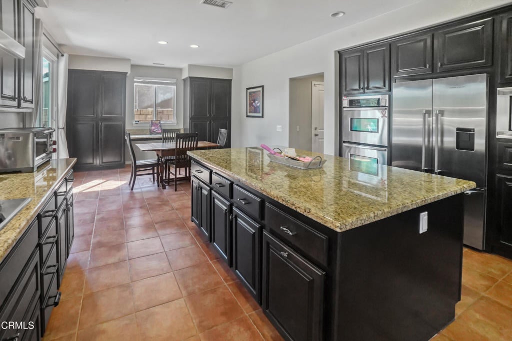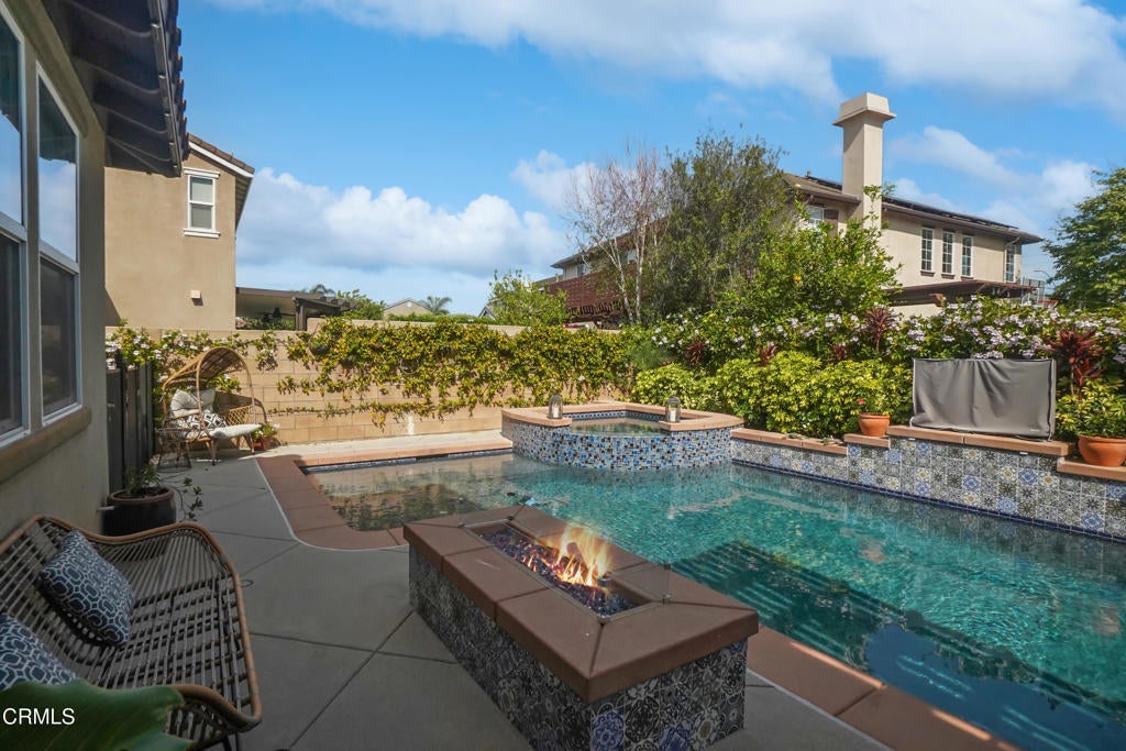 This meticulously maintained 5-bedroom, 3-bathroom home delivers 3,420 square feet of refined living space with a backyard built for year-round entertaining. A custom saltwater pool and spa (2022) with glass mosaic tile, built-in Baja shelf, and raised spa sit alongside a gas fire pit and a built-in outdoor kitchen featuring a stainless steel BBQ island wrapped in hand-painted Talavera tile -- all under a pergola with ceiling fan and string lights. A separate Saltillo tile courtyard framed by bougainvillea and wrought iron seating creates a second entertaining zone. Removable child safety fence for peace of mind.Inside, rich hand-scraped hardwood floors and plantation shutters flow throughout. The open-concept great room centers on a gas fireplace framed by a bold accent wall, built-in surround sound ceiling speakers, and French doors opening directly to the pool and patio. The chef's kitchen features dark espresso raised-panel cabinetry, granite countertops, a generous center island with breakfast bar, gas cooktop with range hood, built-in wall oven and microwave, and stainless steel appliances including a French-door refrigerator. Under-cabinet lighting and a breakfast nook with sliding glass doors to the backyard complete the space. A formal dining room with designer accent wall seats six comfortably, while the formal living room boasts soaring two-story ceilings flooded with natural light.A main-floor bedroom and full bath with glass-enclosed shower provide flexible space for guests, a home office, or multigenerational living. The dedicated laundry room includes a folding counter and upper and lower cabinetry.Upstairs, an open loft landing with built-in cabinetry overlooks the living room below -- ideal for a media center, homework station, or reading nook. The oversized primary suite features a spa-inspired bath with oval soaking tub, separate glass-enclosed walk-in shower, dedicated vanity, and private water closet. Three additional bedrooms offer generous proportions with hardwood floors and ceiling fans throughout, including one with arched windows and plantation shutters and another with a French door to the second-floor balcony. The hall bath features dual sinks and a separate tub/shower room.Attached 3-car tandem garage. Turf rear yard. Mature landscaping with tropical plantings. Corona-Norco Unified School District. Minutes to I-15, SR-60, and SR-71. This is Eastvale living at its finest.