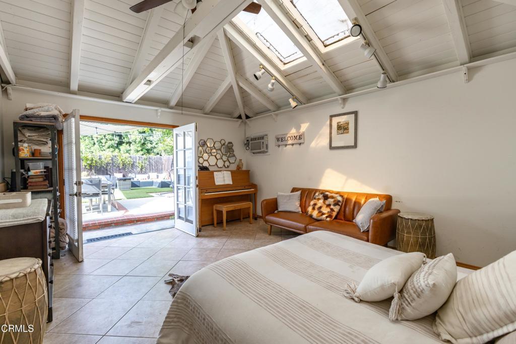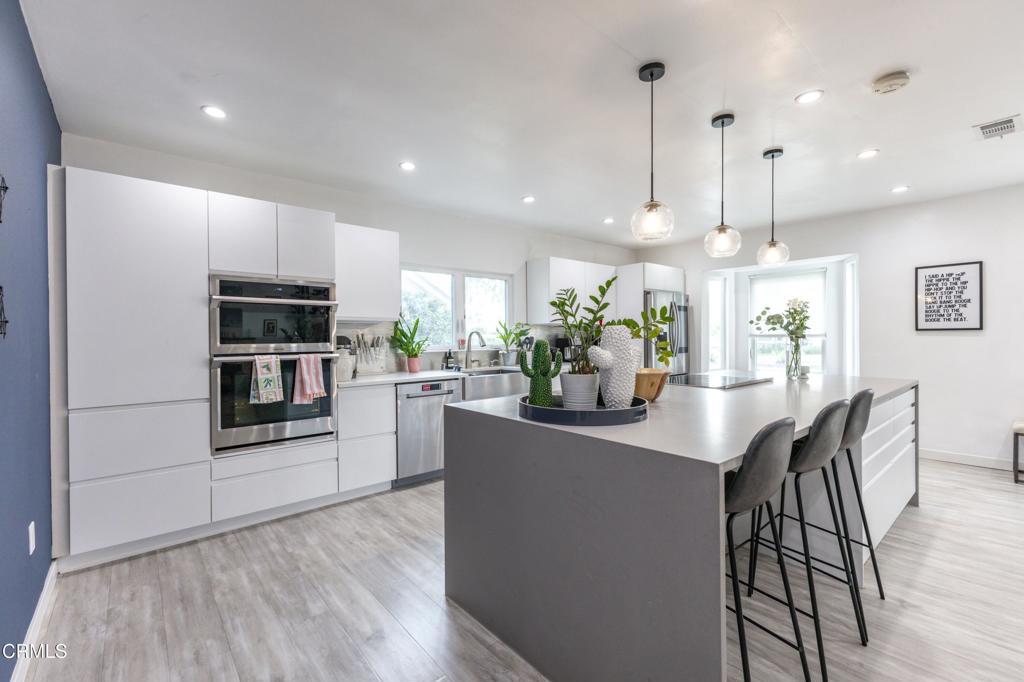 Located in the heart of Daisy Villa, this completely remodeled and expanded single-level home offers an open floor plan with modern finishes throughout. This is not a flipped property and boasts thoughtful and thorough upgrades, including plumbing, electrical, roof, windows and more. This 3-bedroom, 2-bath home measures 1,655 sf, with an additional 228 sf bonus room, for a total of 1,883 sf. The front yard welcomes with large concrete pavers accented by decorative rock. Designer plank flooring runs throughout, complemented by central air and heat, and inside laundry. The modern kitchen features a center island with a breakfast bar, chic white cabinetry, and a stainless steel appliance package, opening to the expansive great room with a fireplace. The master suite offers French doors to the backyard and a spa-like bath with dual vanities and a walk-in shower. Secondary bedrooms are well separated and share a full bath, ideal for kids. The backyard is designed for entertaining with a pool, flat grass area, and a rear 228 sf bonus room studio just behind the detached 2-car garage at the rear, accessed by a long gated driveway, all offering great ADU potential. Convenient access to the 210 freeway and close proximity to shopping, dining, and retail, including Whole Foods Market and Trader Joe's.