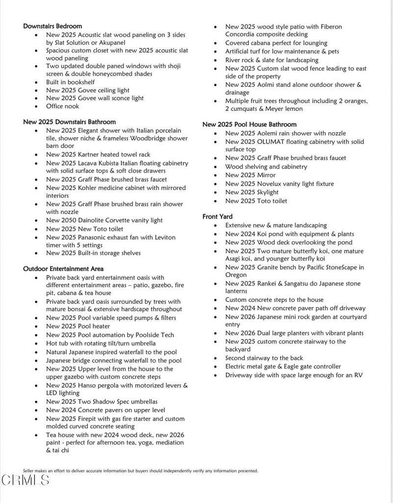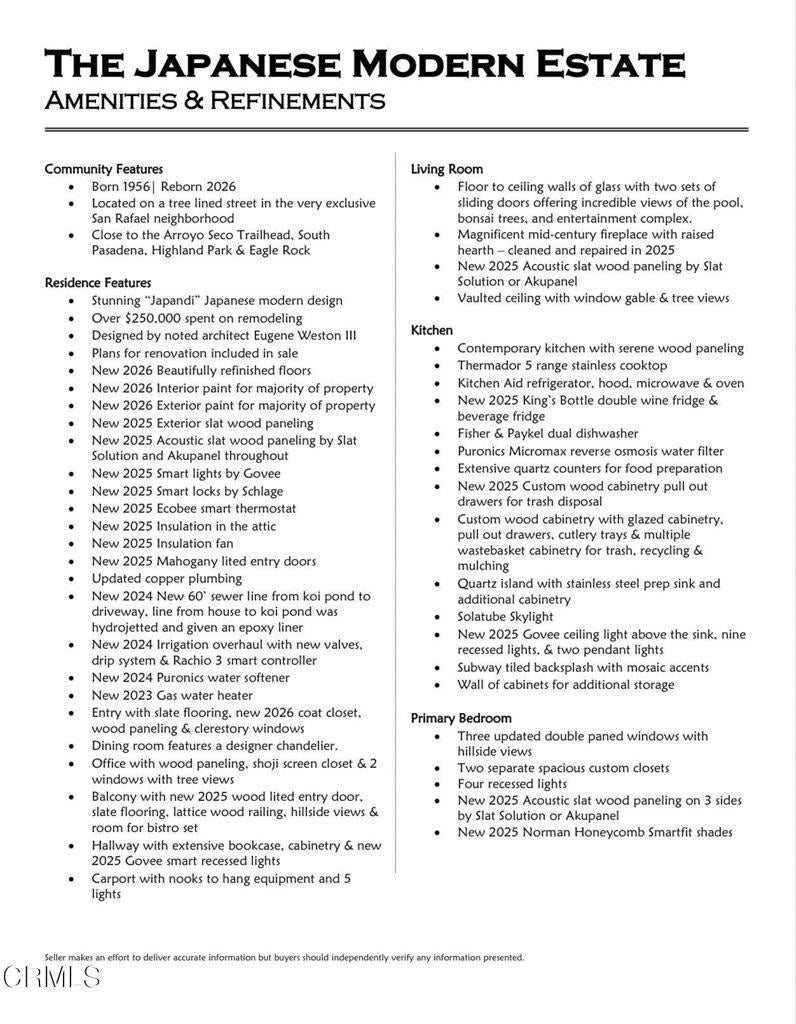 Set within the coveted hills of San Rafael, this exceptional Japanese modern estate offers a rare blend of refined design and tranquil, resort-style living. Reimagined in the sought-after Japandi aesthetic, the south-facing residence embodies a seamless balance of contemporary elegance and natural serenity--ideal for both everyday living and elevated entertaining.A striking approach evokes a private Japanese garden, where concrete pavers with moss inlays lead through curated landscaping to a newly constructed koi pond with cascading waterfalls, a viewing deck, and mature koi. A serene courtyard with a rock garden and custom planters provides a peaceful introduction to the home.Inside, the formal entry opens to a dramatic open-concept floor plan. The living room impresses with vaulted ceilings, walls of glass framing the outdoor oasis, a sleek modern fireplace, refinished wood floors, and custom wood-paneled walls. The kitchen is thoughtfully appointed with quartz countertops, abundant cabinetry, stainless steel appliances, a skylight, and a generous island.The primary suite serves as a private retreat, featuring treetop views, dual custom closets, and refined finishes. The spa-inspired bath offers a luxurious escape with an oversized shower, dual floating vanities, heated towel racks, and a separate water closet. Secondary bedrooms include vaulted ceilings, updated lighting, hillside views, and direct access to outdoor amenities.A beautifully finished lower-level guest house provides exceptional flexibility, complete with a private entrance, living area, kitchenette, laundry, and a serene bedroom with office nook. The updated bathroom continues the home's signature Japanese spa aesthetic with refined finishesThe grounds are a true sanctuary. A cascading waterfall flows past mature bonsai and a Japanese bridge to a large pool and spa. An upper terrace features a louvered gazebo and ample lounging space, while a custom concrete fire pit invites gathering. A covered cabana, updated pool bath, tranquil tea house, and expansive wood-style patio complete this remarkable outdoor setting.After nearly two years and approximately $250,000 in thoughtful enhancements, this residence stands as a true work of art--an inspired vision brought to life. Offering unparalleled tranquility and design in one of Pasadena's most picturesque settings, this is a once-in-a-generation opportunity to own one of the city's most distinctive and captivating properties.