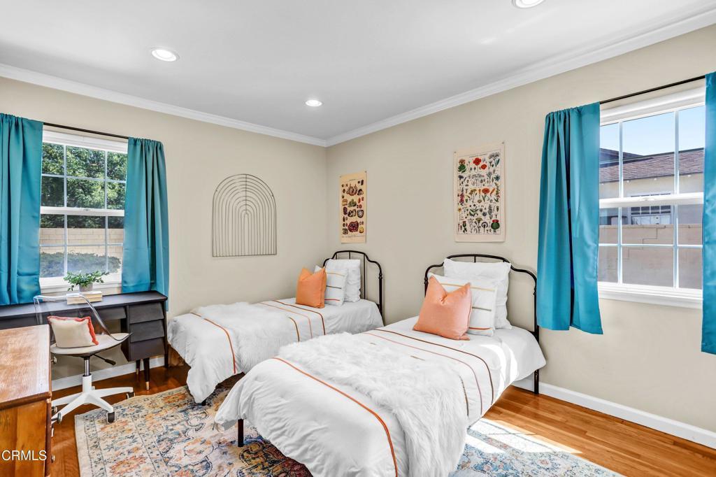 Experience California living in this exceptional corner-lot residence, gracefully positioned on an expansive parcel with breathtaking views of the San Gabriel Mountains. Thoughtfully designed and beautifully appointed, this 3-bedroom, 2-bathroom home offers a seamless blend of comfort, elegance, and indoor-outdoor living.The interior is filled with natural lighting through large panel doors that create an open ambiance. The homes functional layout includes a primary suite complete with its own full bathroom. The kitchen features sleek granite countertops and flows effortlessly into the main living space, ideal for both everyday living and entertaining. Additional highlights include a new roof and a dedicated indoor laundry room, complete with washer and dryer, adds convenience without compromising style.Step outside to an expansive backyard showcasing a stunning pool, complemented by a fenced patio perfect for intimate gatherings or tranquil relaxation. The generous lot offers exceptional versatility, including potential for an ADU conversion via the existing garage, presenting an opportunity for multigenerational living or additional income.Ample parking accommodations include a garage, two separate driveways (one for possible RV parking), and plentiful street parking--an uncommon luxury. With its prime corner location, captivating views, and resort-style amenities, this home represents a rare opportunity to enjoy elevated living in a truly desirable setting.