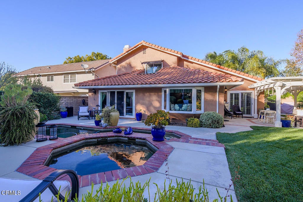 This immaculate home is what you've been looking for with 3 bedrooms, 2.5 baths boasting over 2,300 sqft of stylish living space. The highly sought after El Dorado neighborhood in Plum Canyon has no Mello-Roo's obligations nor HOA fees. Owned by the original owner this home is being offered for sale for the first time. As you approach, the lush grass and perfectly landscaped front yard immediately capture your attention, hinting to the tranquility within. Enter into a light and bright formal living room with high ceilings and large windows. The Mannington Washington Cherry hard wood floors catch your eye as you move towards the wowing kitchen with large center island and granite countertops. Center island is even equipped with warming drawer and is perfect for the cooking enthusiast. All kitchen appliances are all under 3 years old and kept as new. Kitchen area is well lit by natural sunlight supplied by a large bay window that gazes out on the great pebble tech, gas heated, pool and spa combo. Family room adjacent to the kitchen has a custom wood built in entertainment center surrounding the brick fireplace and through a pair of Oak French doors one will find a large room that could be used for any such desire. The serene ambiance of this room is provided by the full view of the pool and sounds of smooth falling water from the dual spa waterfalls. This is a wonderful space for work, hobby or pleasure. Second story hosts 2 spacious bedrooms, full bath and Master bedroom and bath. Master bedroom has privacy doors separating the master bath with dual sink and vanities, shower and a walk-in closet. The pristine backyard offers a great entertaining space with more lush grass, a pergola and ceiling fan installed gazebo. The 2-car garage has plenty of storage space with a beautiful washer and dryer, built in cabinets and a work bench. This neighborhood is located a stone's throw form restaurants, shops and award-winning schools, ensuring convenience without compromising on the peacefulness of this home. Listing agent is related to Seller. Furnace and AC installed 5/20. Water Heater installed 10/21. Refrigerator installed 6/23. Combo oven microwave unit installed 6/24. Dishwasher installed 6/23.