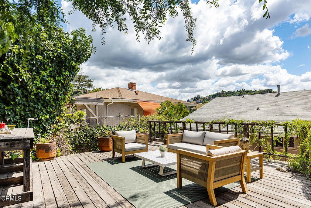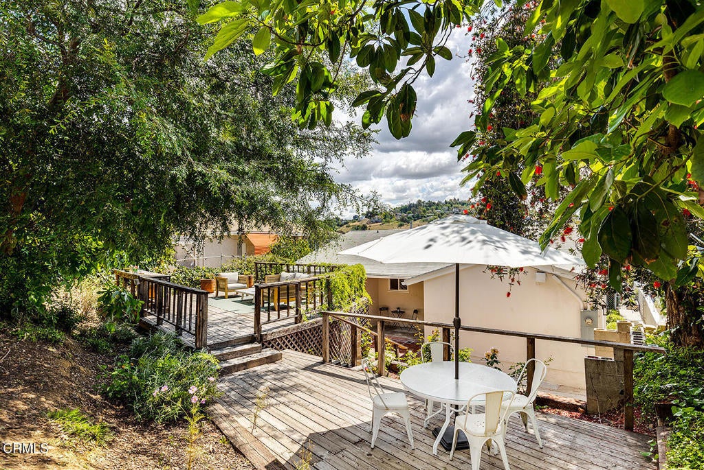 Set above the bustle in a charming hillside neighborhood, this bright 1955 midcentury traditional offers space, comfort, and lovely neighborhood views. A bright, open living and dining area anchors the home, creating an easy flow for everyday living and entertaining.The spacious floor plan includes three bedrooms and two tastefully updated bathrooms, along with a cheerful kitchen featuring a breakfast nook. Each bedroom offers generous closet space, while thoughtful upgrades - central air and heat, updated plumbing and electrical, newer double-pane windows, and fresh interior and exterior paint - add to the home's ease and livability.Outdoors, the garden is a highlight, with drought-tolerant landscaping, roses, and planter boxes. A spacious deck creates the perfect setting for dinners under the stars or watching neighborhood fireworks on the 4th of July. The upper yard adds even more flexibility - ideal for play, gardening, or simply enjoying the space.A two-car garage with extra storage space sits at street level, complete with a new automatic door opener. All just moments from some of Northeast LA's favorite spots, including Bub and Grandma's, Dunsmoor, The Grant, Habitat, Lemon Poppy, Little Ripper, and more, plus easy freeway access when you need to get across town. Here you have the best of both worlds: minutes from it all while still feeling a world away.