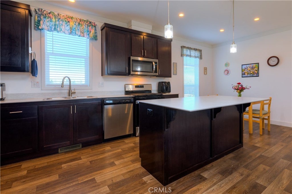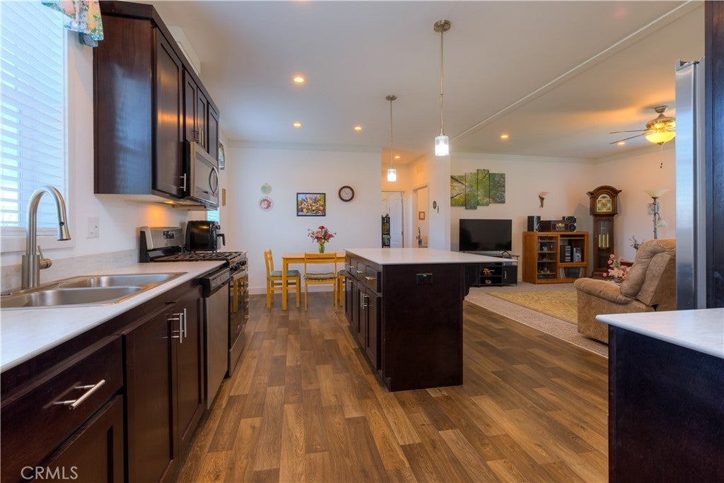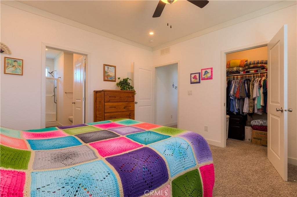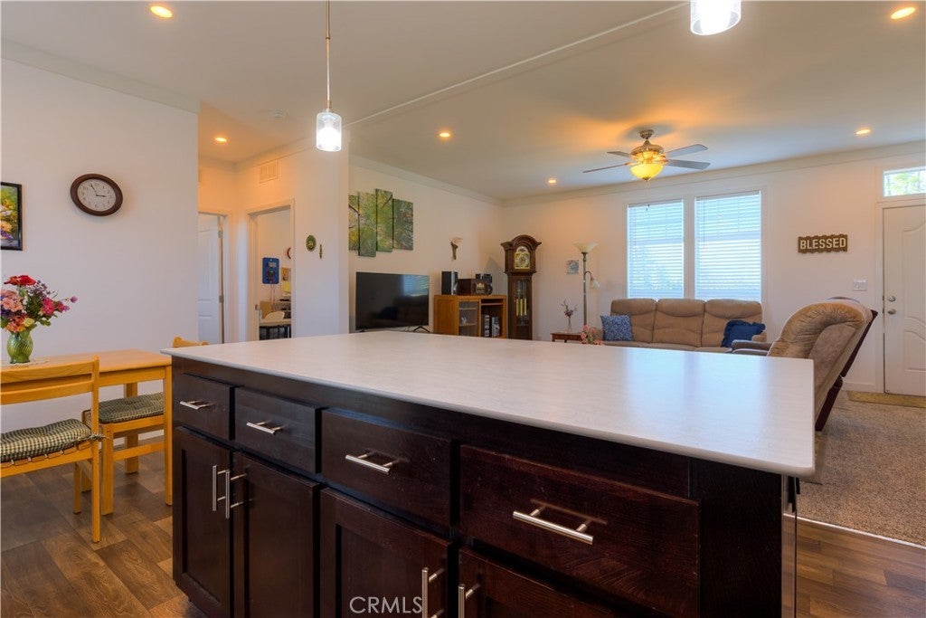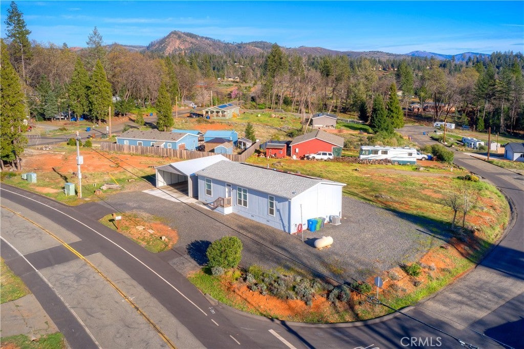 Lovely manufactured home with a spacious kitchen and large island open to living room. Stainless steel appliances, soft-close drawers, pantry and generous cabinet space. All 3 bedrooms have a walk in closet, split bedroom floorplan with 9 foot walls with 2x6 exterior walls and upgraded insulation and energy efficiency along with leased solar. Roof has architectural shingles and 12 inch eaves. Backyard offers distant views and gazebo for a shaded area for outdoor gatherings. 24 x 28 carport just lacking front side wall and doors to be a garage, 6 x 24 shop attached to rear of carport. Paradise Pines property owners asssociation is $310 a year and includes a club house, large pool, picnic areas, tennis, pickleball courts and many opportunities for enjoying nature walks on the many trails running throughout the expansive greenbelt areas. Del Oro water company.