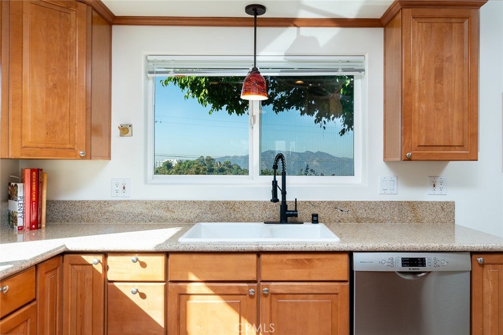 Rare Double Views, Elegant 1920s Spanish Revival in Coveted Adams Hill - - - Perched high above the street in Glendale’s Adams Hill neighborhood, this 1920s Spanish Revival home captures breathtaking views from nearly every room — from sunrise over the hills to glowing sunsets to the west. Its rare double-view orientation fills the interiors with natural light throughout the day, while timeless architectural details harmonize with thoughtful, high-quality updates. The home exudes pride of ownership, where every surface has been carefully renewed with taste and craftsmanship. A charming living room with a classic barrel ceiling, handsome fireplace, and sweeping western views anchors the main living space. The spacious floor plan includes both a formal dining room overlooking the hills and a cheerful breakfast nook with morning light and eastern vistas. Even the kitchen sink enjoys a stunning view. The primary suite offers an updated ensuite bath, while the office or den — counted as the fourth bedroom — impresses with high ceilings, skylights, and an elegant eyebrow window. Outdoor living is equally enchanting: Saltillo-tiled patios complement lush, meticulously maintained gardens. Enjoy two distinct entertaining terraces — a tranquil east-facing patio perfect for morning coffee and a west-facing terrace ideal for unwinding at sunset. Another large patio rests gracefully above the detached two-car garage, offering yet another serene retreat. Practical upgrades include copper plumbing, central heat and air, and dual-pane windows. Additional storage spaces adjacent to the crawlspace provide the perfect opportunity for a wine cellar or easily accessible storage. All of this in a peaceful, historic enclave just 8 miles from Downtown Los Angeles, 10 miles from Burbank, and 7 miles from Pasadena — a central location that offers convenience without sacrificing charm or tranquility. ***Street address shows 1408 Corona Dr, mailing address is 1404 Corona Dr.***