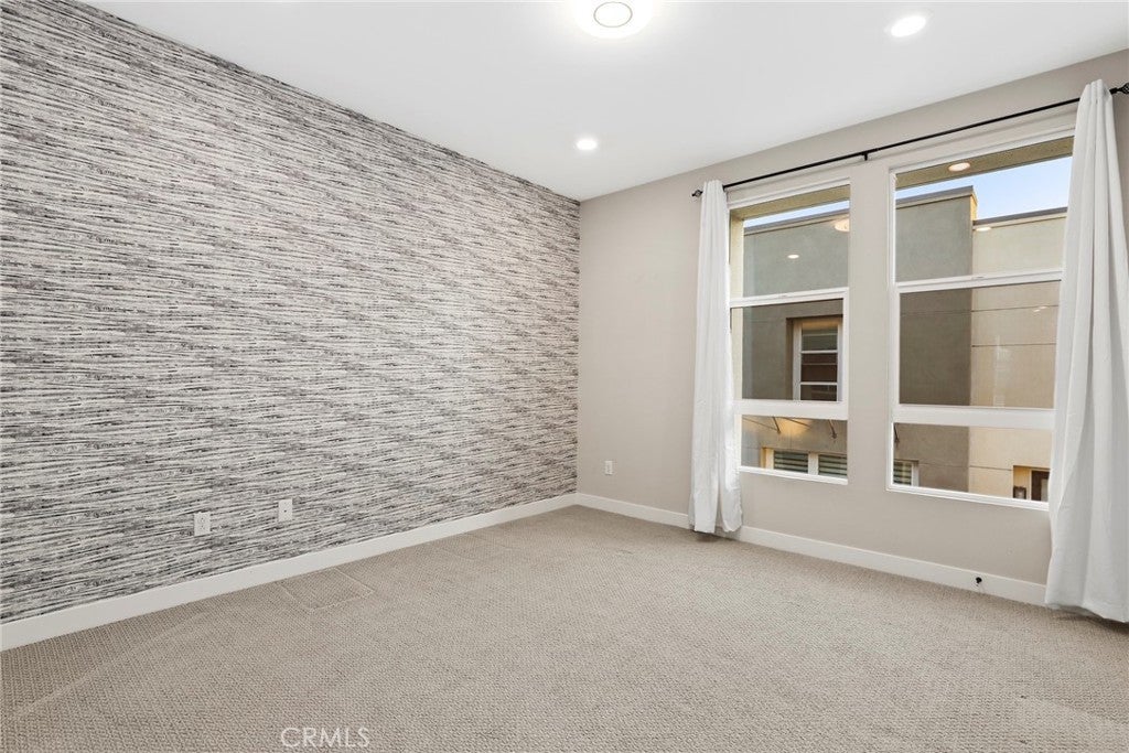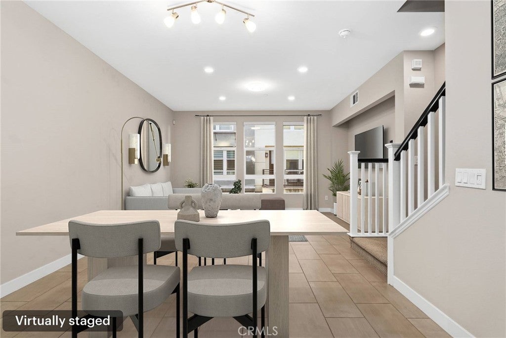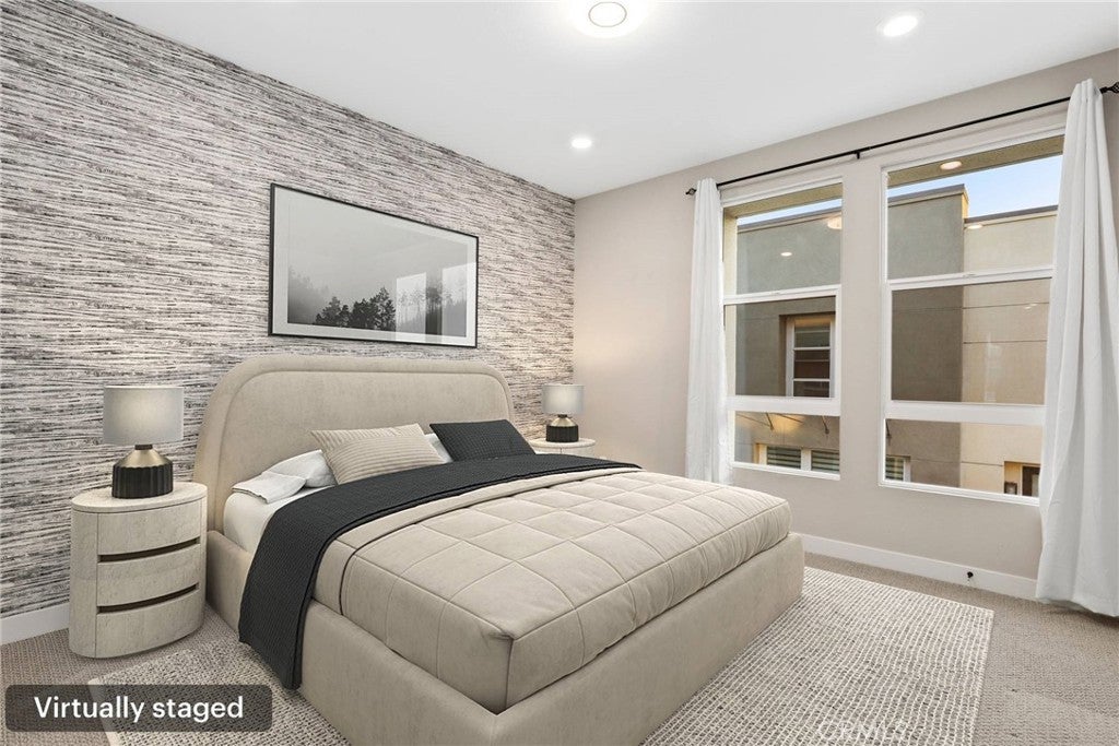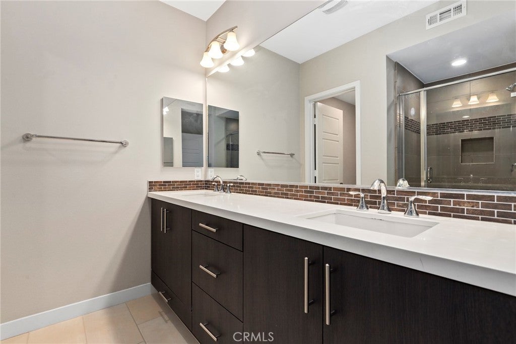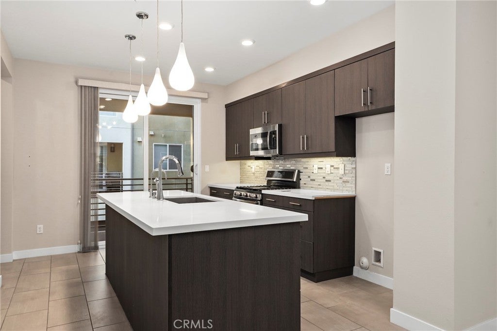 Experience modern comfort and style in this stunning tri-level home featuring 3 bedrooms, each with its own private bathroom—including a first-floor suite ideal for in-laws or guests. Enjoy energy-efficient mini-split A/C on the first floor, abundant natural light, tile flooring, recessed lighting, and Levolor zebra blinds throughout the main levels. The open-concept kitchen is a showstopper with stainless steel appliances, quartz countertops, sleek contemporary cabinetry with underlighting, a gas stove, built-in microwave, dishwasher, stylish backsplash, storage island, modern pendant lighting, pantry, and sliding doors leading to a covered balcony—perfect for relaxing or entertaining. Upstairs, the primary bedroom impresses with ample closet space and an elegant en suite boasting a dual-sink vanity, water closet, custom tilework, and glass-enclosed shower. A second upper-level bedroom provides comfort and privacy with its own en suite and spacious closet. Additional highlights include an attached 2-car garage with motion lights and a 220V 14/50 EV charger, guest parking inside the gated community, top-floor laundry, tankless water heater, whole-house water softener, 7-stage reverse osmosis filtration system, humidity-sensor exhaust fans, enhanced sound insulation, premium Moen and Kohler fixtures, and custom built-ins.