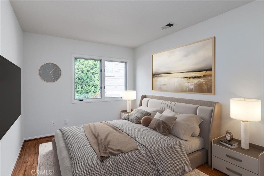 Located in the desirable California Rose Court, this Virtually Staged 3 bedroom, 2.5 bath townhome style PUD was recently refreshed for sale. This unit features a flexible floor plan allowing the new owner the opportunity to decide the best way to use the interior space. It is currently staged with the living room, dining room and fireplace sharing a grand space with a sliding glass door to the low maintenance backyard. The kitchen features another possible eating area and sitting area. Upstairs the primary bedroom, with attached private bath and walk-in closet, also has access to a private balcony. The laundry is located upstairs for convenience, along with the 2 other bedrooms, which share the hallway bathroom. This unit also features a house fan. The complex includes a pool, spa, and relaxing greenbelt area. Centrally located, it is close to the city’s popular Saturday Farmers Market and several parks.