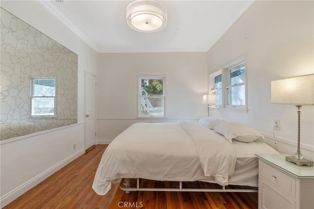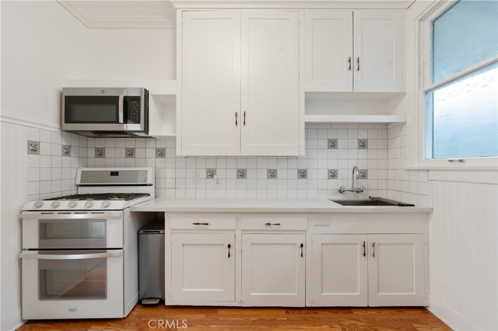 Charming back house with beautiful character and privacy. The dwelling is located at the back of the main house, detached, with a private gate surrounding the property. The hardwood floors have been refinished and a electric fireplace has recently been added, providing even more warmth to the space. There are 2 spacious bedrooms, 1 full bathroom, and a very cute kitchen. Laundry is available. Water, trash, and sewer are included, with gas and electricity individually metered. Occupancy is available right away or Owner can be flexible. Pets are permissible up to 20lbs.