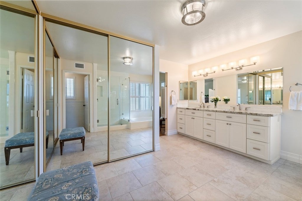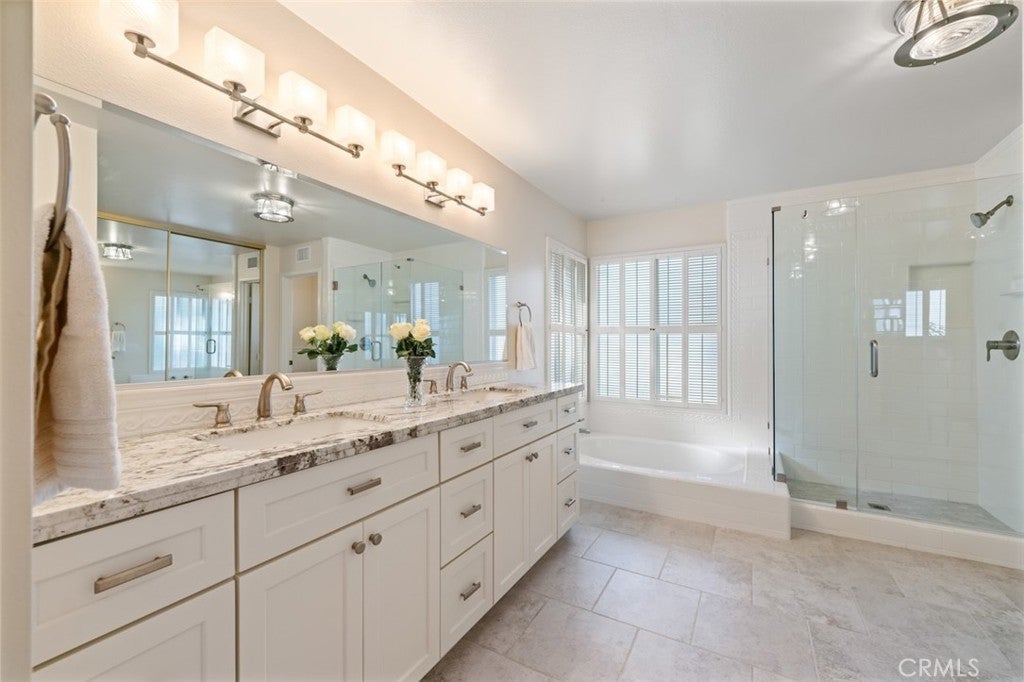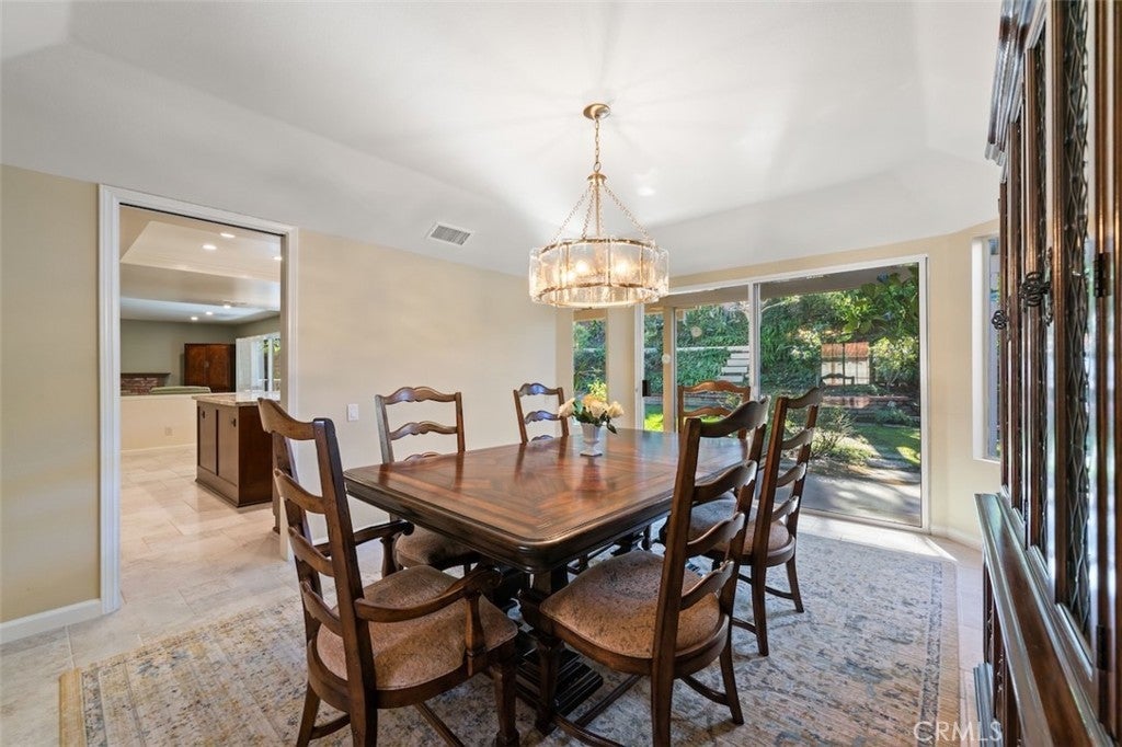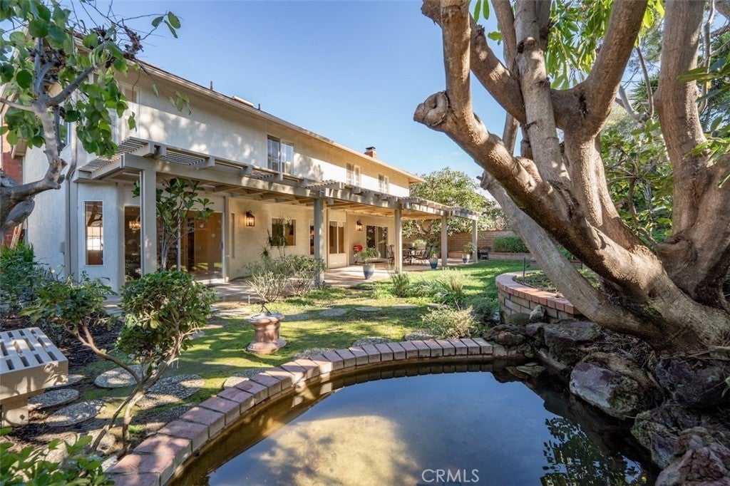 Gorgeous, model-like turnkey home located in the desirable Spy Glass Estates with over 3,200 square feet of airy, sun-filled living space. From the charming front porch seating area to the sweeping spiral staircase, every corner exudes a harmonious blend of style and comfort. The soaring vaulted ceilings, Italian tile flooring, and a wet bar create an ambiance of elegance. Two fireplaces add warmth and coziness, while the seamless indoor-outdoor flow invites you to enjoy the outdoors. The remodeled kitchen features a center island, ample counter space, and stainless steel appliances, making it a culinary haven. The main floor bedroom and bathroom are complemented by a gorgeous new shower. The primary suite is a true retreat, complete with a sunken tub, shower, double vanity, and spacious closet. Upstairs, the oversized room offers endless possibilities—an office, playroom, media room, or even a potential fifth bedroom. The lush front and back yards, professionally curated by R.A. Landscape Designers, are a feast for the eyes. The back yard is exquisitely manicured, providing a peaceful oasis. Multiple fruit trees, including avocado and lemon, add a touch of nature to the landscape. A large shaded patio and serene pond enhance the outdoor experience. Additional features include an indoor laundry room with a utility sink and a 3-car garage. Tucked away in a beautifully maintained neighborhood, this home is conveniently located near schools, shops, and local favorites, offering the perfect blend of tranquility and convenience.