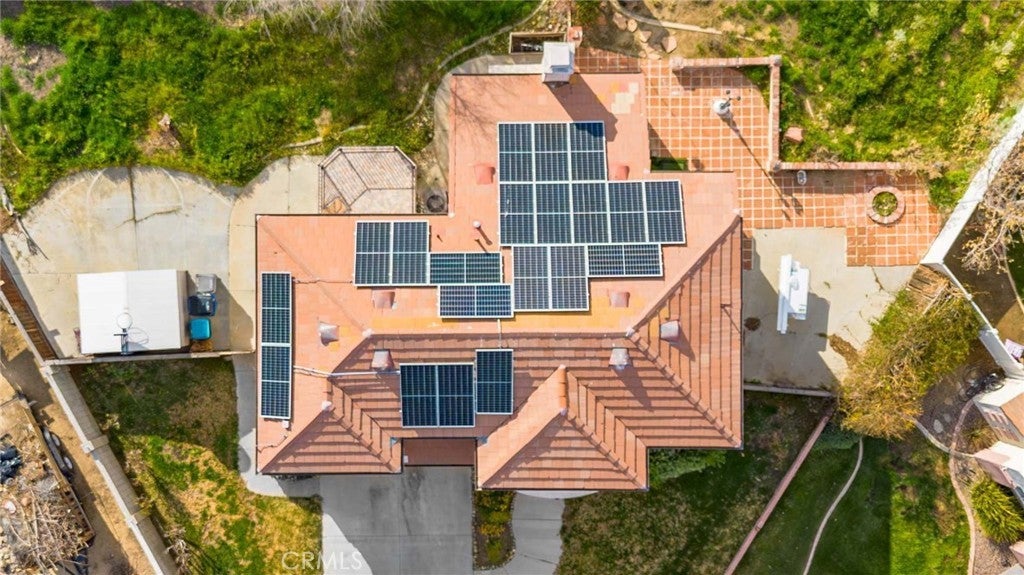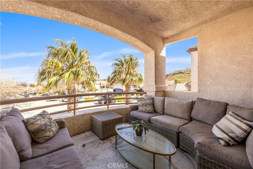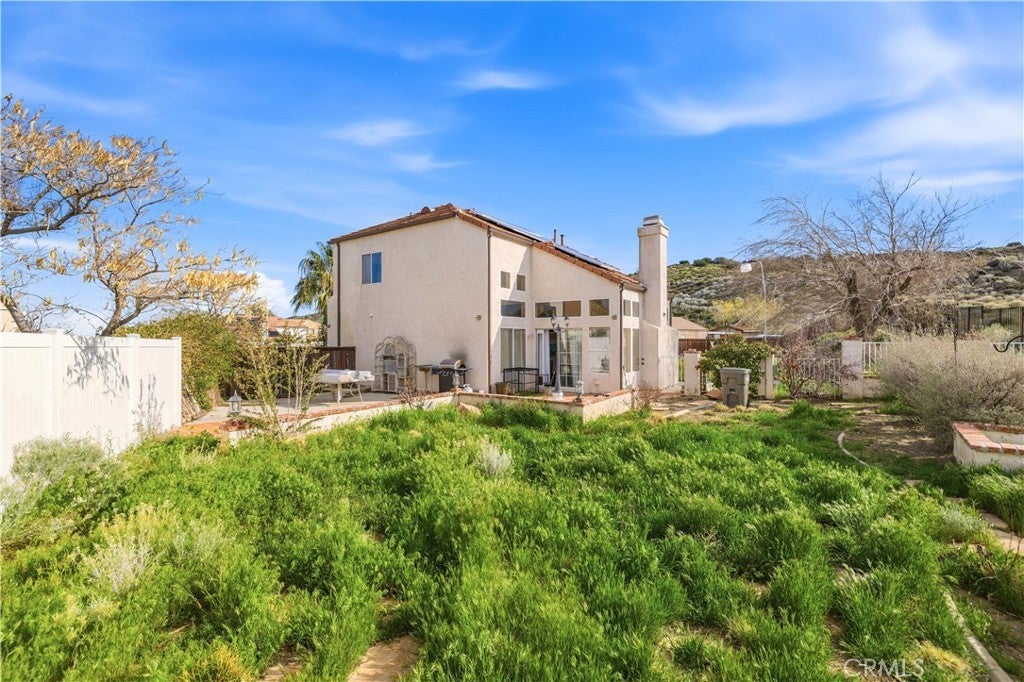 Set on a hillside, this beautiful two-story home sits at the top of a quiet cul-de-sac, offering privacy and scenic views. The Mediterranean-inspired exterior is complemented by a charming front balcony, perfect for enjoying valley vistas—while the interior features clean, contemporary styling. The first level is filled with abundant natural light and high ceilings. The cozy living room features a fireplace and a sliding glass door that opens to the spacious backyard, creating a seamless indoor-outdoor flow. The kitchen boasts stainless steel appliances, granite countertops, and a tiled backsplash and flooring, ideal for both everyday living and entertaining. A convenient powder room completes the first floor. Upstairs, an elegant staircase leads to the second level, which offers three nicely sized bedrooms with mirrored closet doors that enhance brightness and space. The hallway opens to a front-facing balcony with seating and views, creating an inviting shared area. The generously sized primary suite features large closets, dual sinks, a full bath, and direct access to a private rear balcony overlooking the backyard and open space beyond.The expansive backyard includes an oversized patio, a lush lawn with stepping-stone pathways, a storage shed, and impressive open views—perfect for relaxing, entertaining, or future customization. This sunny and cozy home offers comfort, style, and a highly desirable hillside setting.