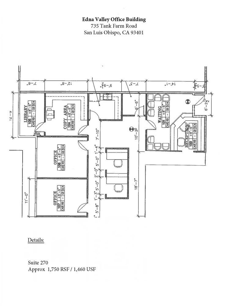 Suite 270 has a great floorplan with professional reception area with spacious entry. 2 private oversized executive offices and a large conference room as well as open bay area, break out room, storage, Server Room and Eat in Kitchen. Located in one of the premier buildings in SLO, the Edna Valley Office Building is a beautiful, well-maintained professional space with great common areas, smart lighting, and custom climate control in a convenient location. Fiber Speed Available! The Edna Valley Office Building also has a large professional conference room available for tenant use.