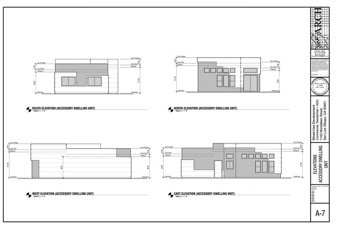Commercial / Residential mixed use development opportunity in San Luis Obispo! This pre-planned mixed use development in downtown San Luis Obispo offers substantial income potential with 5 units to be built (2 commercial, 2 residential + ADU) within 1 mile walking/biking/transportation of Cal Poly campus San Luis Obispo. Current building on property is 1208 sq ft 2bed/1 bth home built 1910 and is rented until 1/31/2025 allowing for ongoing income as the plans/permits are finalized. Purchase of the property includes existing plans, permits, studies and approvals.