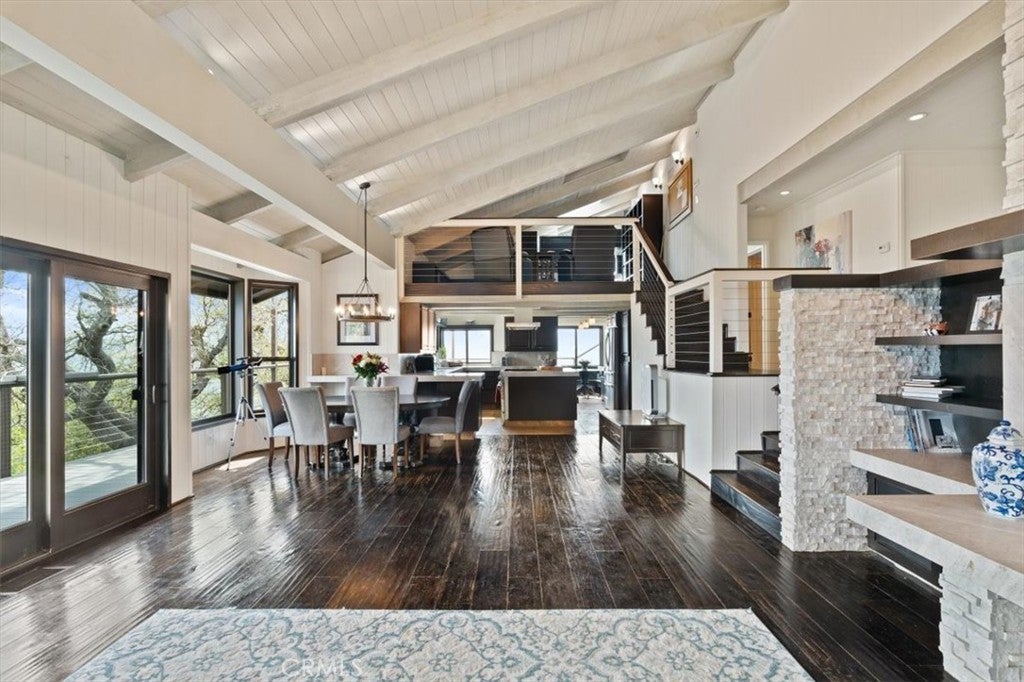 • Interior FeaturesBeamed Ceilings, Built-in Features, Breakfast Area, Living Room Deck Attached, Multiple Staircases, Open Floorplan, Bedroom on Main Level, Loft, Walk-In Closet(s)