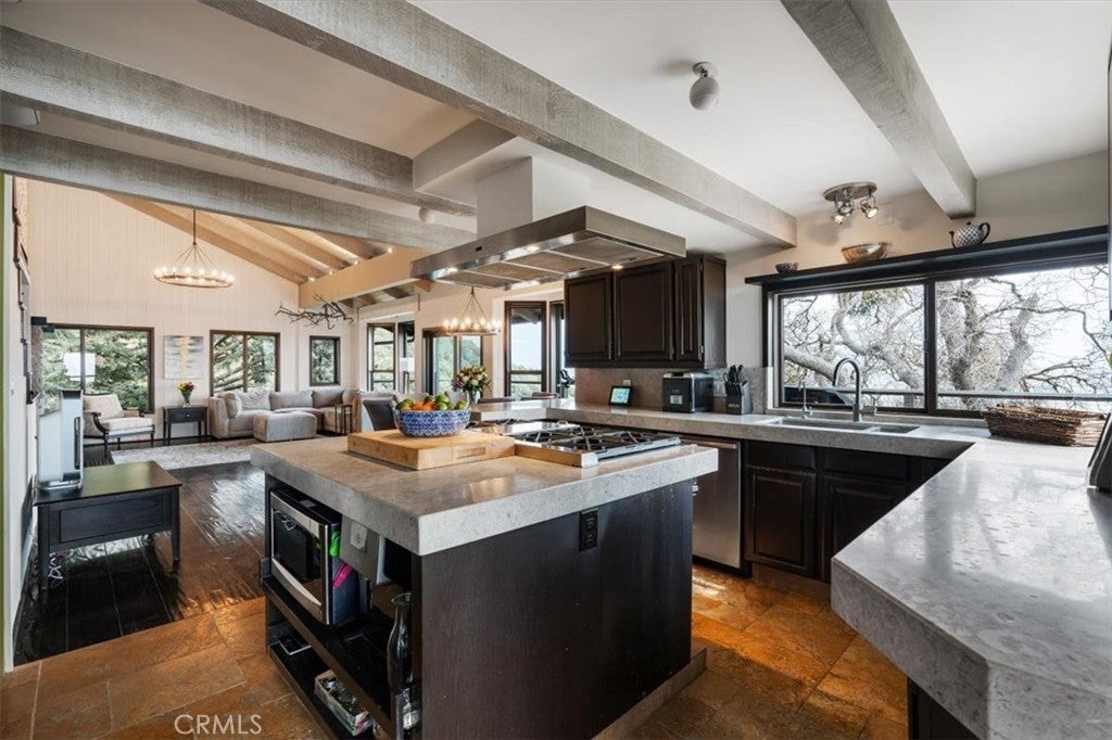Set high above the valley on almost 10 scenic acres, this truly one-of-a-kind Bear Valley Springs estate offers sweeping views of the southern San Joaquin Valley and most of Bear Valley Springs. A long, newly graveled driveway winds through natural surroundings, leading to a peaceful and secluded mountain retreat. This 2,800 sq ft modern farmhouse blends timeless architectural detail with upscale finishes, including honed stone and hand-scraped wood floors, Velux and Milgard windows, dimmable lighting, built-in speakers, and over 1,800 sq ft of Trex decking to take in the expansive views. The chef's kitchen features stainless steel appliances, a 48'' dual oven with griddle, and a cozy breakfast nook. The spacious primary suite offers private deck access and a luxurious bathroom with Nordic Grey marble, a jacuzzi tub, a steam and rain shower, and heated floors. A separate walk-in closet provides plenty of space and storage. Downstairs includes two additional bedrooms, a full bathroom with heated floors, and access to a covered patioideal for a gym, yoga space, or peaceful hangout spot. Between the main floor and lower level, you'll also find a massive laundry room with extensive storage. The grounds include raised beds and existing irrigation lines in place, ready for new life. A detached two-car garage includes water, power, EV charger, and a dedicated workshop area. There's also a storage shed with power, and a large storage space beneath the home with water, power, and HVACperfect for tools, hobbies, or future expansion. The septic system was replaced in 2021, offering added peace of mind for years to come. Horse potential? Absolutely. With usable acreage and unmatched seclusion, this property offers endless opportunity. Whether you're seeking a peaceful full-time residence or the ultimate mountain escape, this is the lifestyle you've been waiting for.