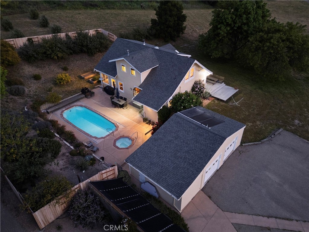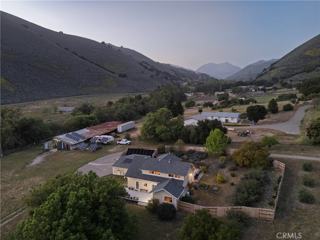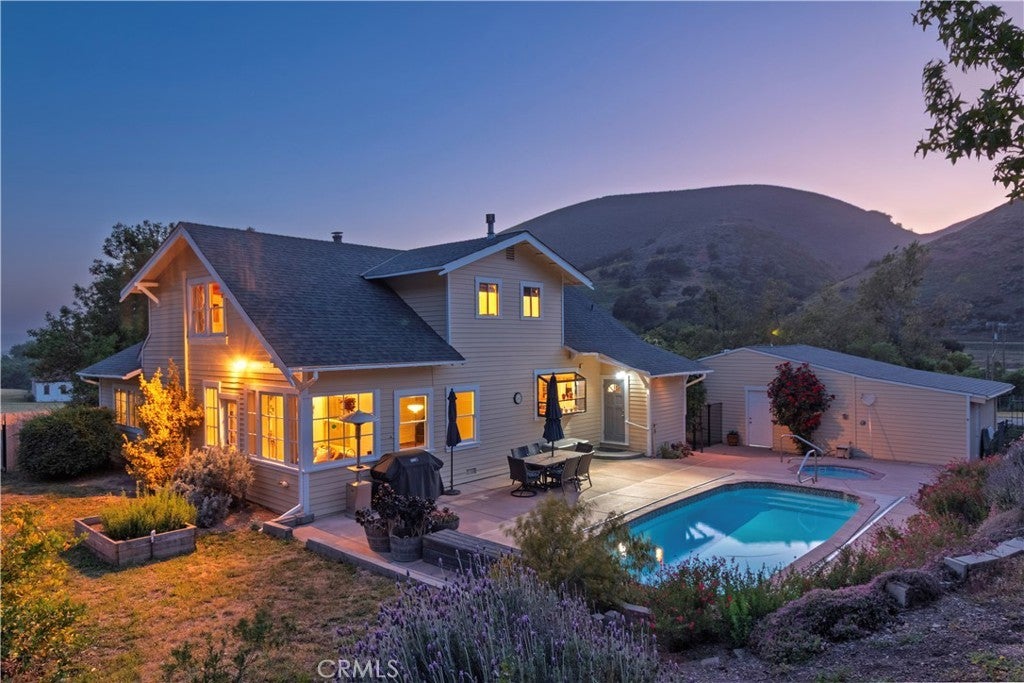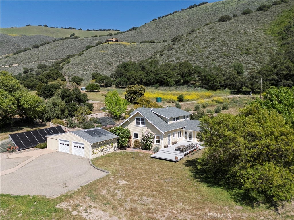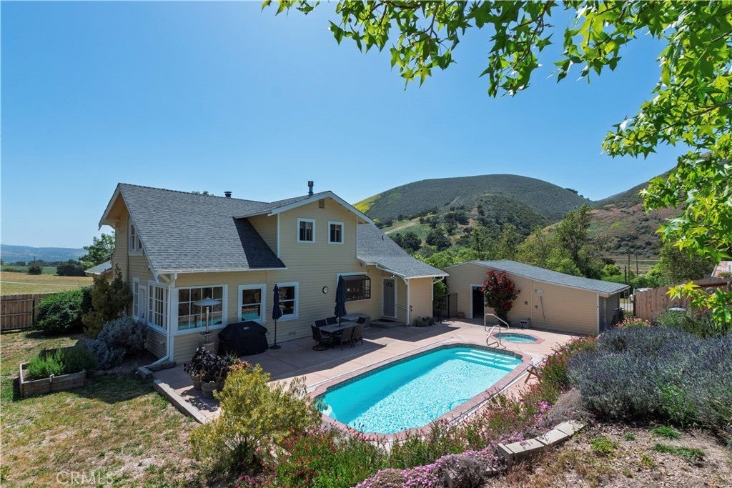 Welcome to 4651 Tepusquet Road—a timeless, storybook farmhouse set on a beautifully maintained ranch in the heart of the Santa Maria Valley. Originally constructed in 1914 and thoughtfully relocated to this peaceful setting over four decades ago, this inviting three-bedroom, two-and-a-half-bath home offers approximately 2,800 square feet of updated living space, blending warmth, character, and functionality. The home’s charm begins at the front entry, where a bright and cozy mudroom/sunroom invites you to enjoy morning coffee, a good book, or sunshine year-round. Inside, hardwood floors run throughout the main level, while large windows flood the home with natural light and showcase serene views of the surrounding acreage. The refreshed kitchen offers ample space for cooking and gathering, with adjacent dining and family rooms that are ideal for entertaining or relaxing with loved ones. A wood-burning fireplace warms the den, and a dedicated office off the family room provides the perfect space for remote work, creative pursuits, or a quiet retreat. Upstairs, the spacious primary suite has vaulted ceilings, generous closets, and an en suite bathroom. Two additional bedrooms share a full bath and offer comfort and style for family or guests. Step outside onto the expansive deck—perfect for starlit dinners, morning sunrises, or quiet reflection overlooking the rolling grounds. Just beyond, a solar-heated swimming pool and hot tub offer a luxurious escape, powered by the property’s owned solar system. The large barn adds value and versatility, with room for agricultural storage, equipment, or a workshop/studio. The surrounding landscape is thoughtfully designed with drought-tolerant plants and raised garden beds for vegetables, flowers, or herbs. A variety of fruit trees—plum, lemon, orange, tangerine, lime, olive—and blackberry vines provide a true farm-to-table experience. The flat, usable land is ideal for horses, a boutique vineyard, organic farming, or even adding a second home or ADU. A year-round creek adds natural beauty and additional potential for farming or grazing on the acreage beyond. Located just off Foxen Canyon Wine Trail and within 2 miles of amazing wineries, this property offers the perfect balance of rural tranquility and modern convenience. Whether you're seeking a peaceful retreat, an entertainer's dream, or a working ranch, this exceptional property offers endless opportunities.