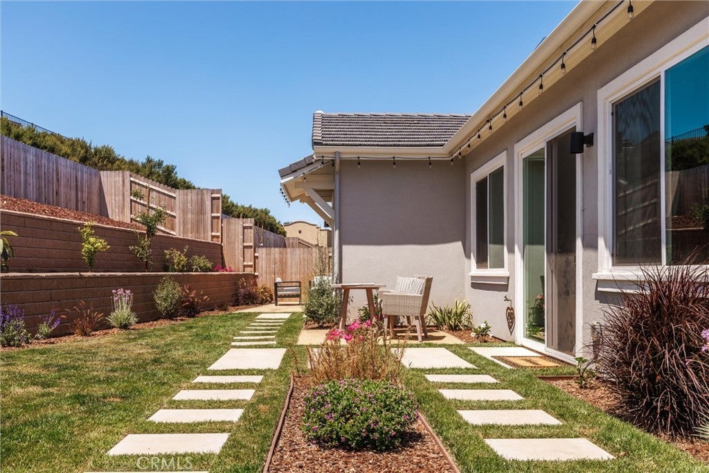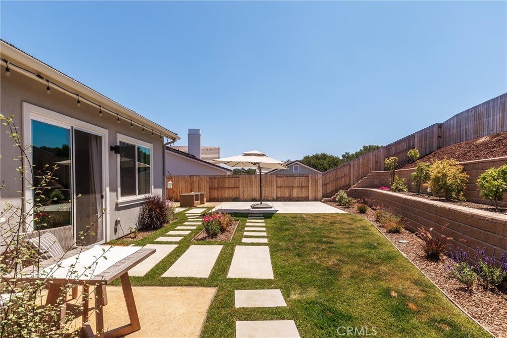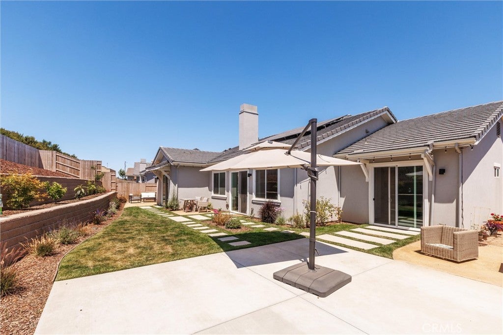 STUNNING, NEARLY NEW SINGLE-STORY HOME WITH BEAUTIFUL UPGRADES -- MOVE IN READY! Built in 2024, this home is located in Orcutt, by Rice Ranch. The spacious open concept home features a seamless flow between the living and kitchen areas, ideal for both entertaining and everyday living. A large separate dining room provides a more formal space for hosting family and guests. With 4 bedrooms and 3.5 bathrooms, the home is thoughtfully designed to accommodate a variety of lifestyles. The private primary suite serves as a peaceful retreat, complete with a luxurious ensuite bathroom. A second ensuite bedroom is perfect for visitors or private home office. High-end finishes are found throughout, including upgraded quartz countertops, luxury vinyl plank flooring in the main living areas and wet rooms, and plush carpeting in most bedrooms. Professionally installed landscaping throughout, recently completed by the seller. The large backyard is fully fenced with raised planters and fruit trees, and two patios offering space to relax or gather. Additional feature includes fully owned solar panels. Located in Vintage Ranch, a newly developed enclave of homes on estate-sized lots. The community is surrounded by lush oak groves and adjacent to the well-known Rice Ranch area, residents enjoy direct access to 580 acres of scenic open space—ideal for outdoor recreation and peaceful living.