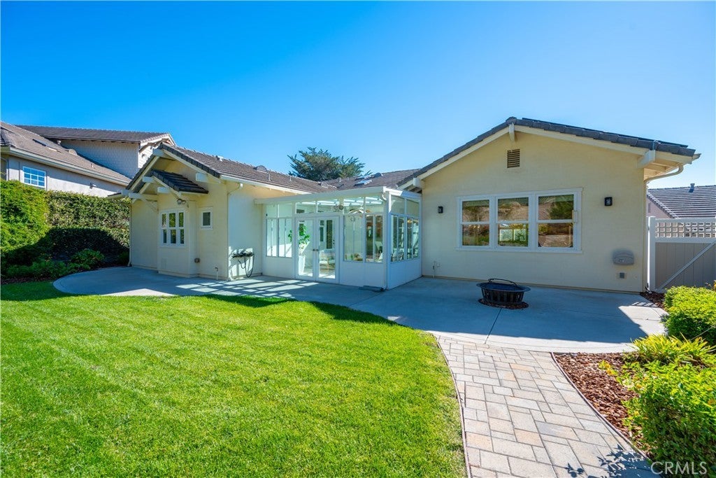 Discover this stunning 4-bedroom, 3-bathroom custom home, perfectly situated in the highly sought-after gated community of Cypress Ridge. Step inside to soaring ceilings and an abundance of natural light, enhanced by thoughtfully placed skylights that create a bright and welcoming atmosphere. The expansive chef’s kitchen is designed for both functionality and entertaining, featuring a generous island, gas cooktop, warming drawer, and extensive custom cabinetry for effortless organization. A bonus sunroom offers a versatile space to relax, work, or simply take in the beauty of the outdoors from the comfort of your home. Outside, the private, tiered backyard is a true retreat—professionally landscaped and surrounded by mature trees for natural privacy. Gather around the built-in gas fire pit for cozy evenings under the stars, or enjoy peaceful moments in your own beautifully designed outdoor sanctuary. Additional highlights include a spacious 3-car garage with extra storage, built-in cabinetry throughout the home, and abundant storage in every room. The home is equipped with owned solar, a tankless water heater, and a water softener for energy efficiency and modern convenience. Enjoy peace of mind and a vibrant lifestyle in Cypress Ridge, complete with a staffed guardhouse, beautifully maintained parks, and a low HOA fee of just $138/month. This home perfectly blends elegant design, comfort, and everyday livability—a rare opportunity to own a truly special property on the Central Coast.