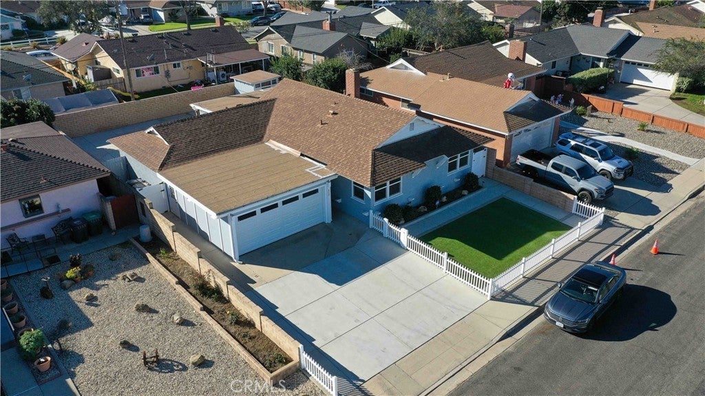 Discover this charming and well-loved 3 bedroom, 2 bathroom home—beautifully maintained by two generations and thoughtfully enhanced for modern living. Step inside to find a permitted additional living room, offering extra space for hosting, relaxing, or creating your ideal entertainment area. A bonus flex space adds even more versatility—perfect for a home office, playroom, fitness area, or creative studio. Outside, enjoy true low-maintenance living with a fully concreted backyard, with block walls around the entire yard. Ideal for gatherings and easy upkeep. The inviting white picket fence and artificial turf front yard give the home charming curb appeal while staying water-wise and maintenance-friendly. The former carport has been upgraded to a full garage with a roll-up door, providing secure parking and valuable storage. Lovingly cared for and filled with thoughtful improvements, this home is move-in ready and perfect for buyers seeking convenience, comfort, and a home with heart.