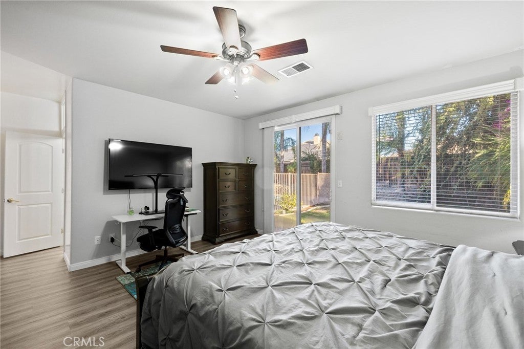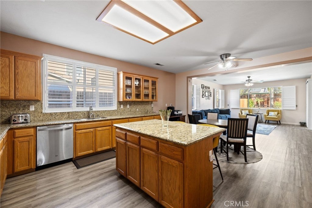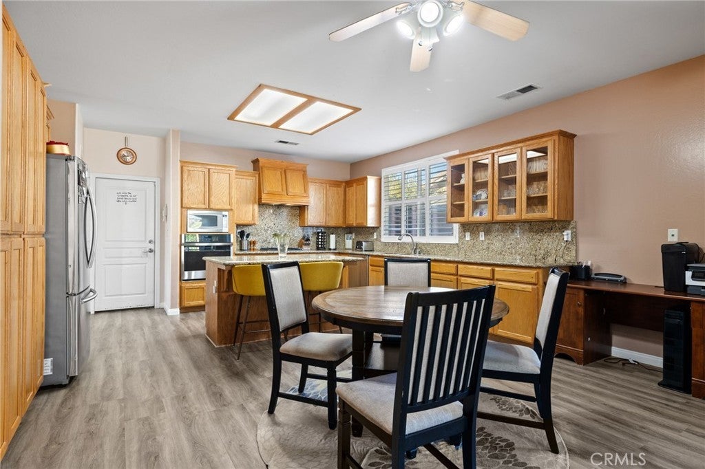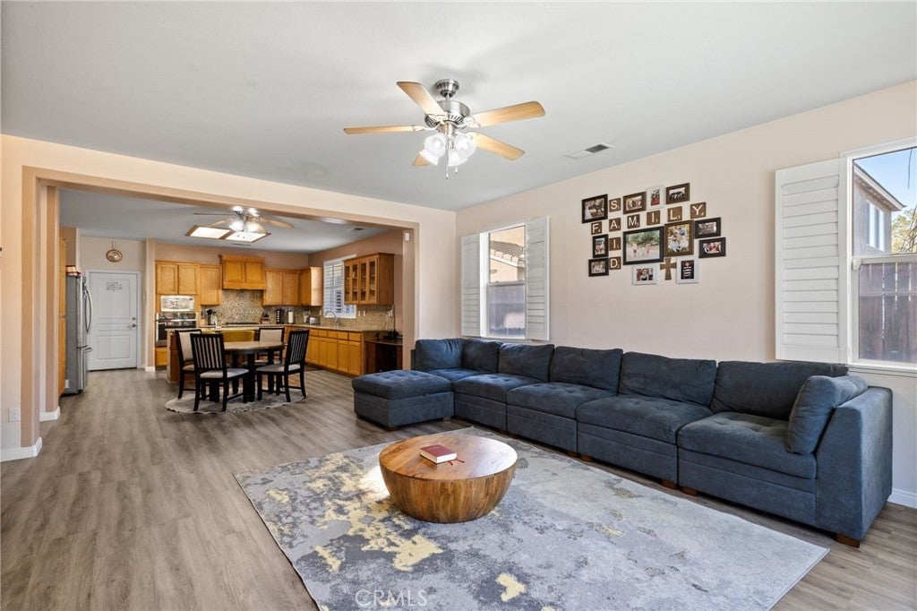 Inviting 4 bedroom 2.5 bath home with large open rooms, Gorgeous LVP wood style flooring throughout, beautiful plantation shutters, well-equipped and spacious kitchen with abundant granite countertops and perfect coffee bar for your Nespresso! Stainless appliances of course, and a work island/bar. Great Primary Suite with huge walk in closet and a bedroom overlooking the back yard! You'll love the giant 3 car garage with beautiful epoxy floors too. The bonus is owed solar! This home checks all the boxes - book your appointment today!