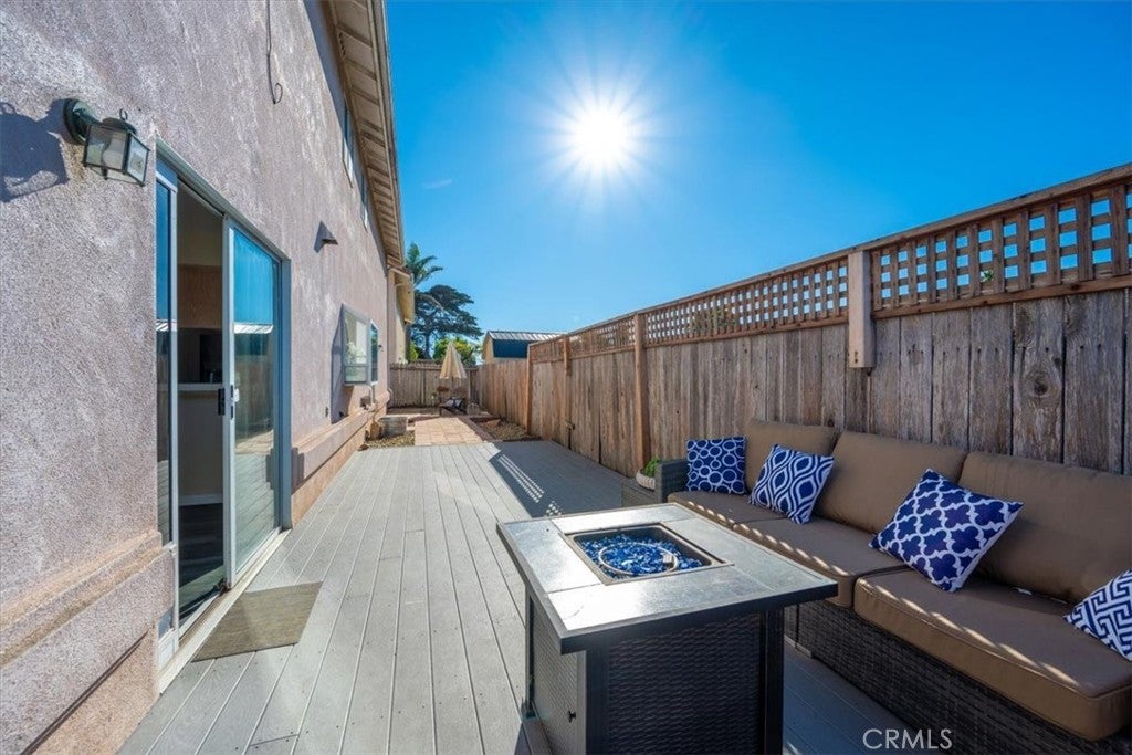 Welcome to your dream coastal retreat nestled in between the sun-kissed shores of Oceano Beach and Grover Beach. This captivating 2-story residence boasts timeless elegance and modern comfort, situated in a tranquil cul-de-sac setting. As you step inside, you're greeted by the warm embrace of vinyl plank flooring that gracefully guides you through the common areas. The expansive living room features vaulted ceilings, exuding an airy ambiance, while a cozy fireplace invites you to unwind after a day of coastal adventures. Entertain with ease in the open-concept floor plan, seamlessly connecting the living, dining, and kitchen areas. Throughout the home you will find an abundance of storage. The large primary suite offers a spacious walk-in closet and en-suite bathroom. Venture outdoors to charming deck patio areas, ideal for al fresco dining and basking in the coastal breeze. Meanwhile, the front yard lawn sets a picturesque scene, welcoming you home with its inviting curb appeal. Conveniently located just 1.4 miles from the beach, this coastal gem offers the perfect blend of city and coastal living.