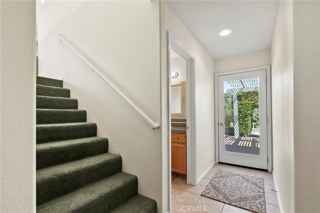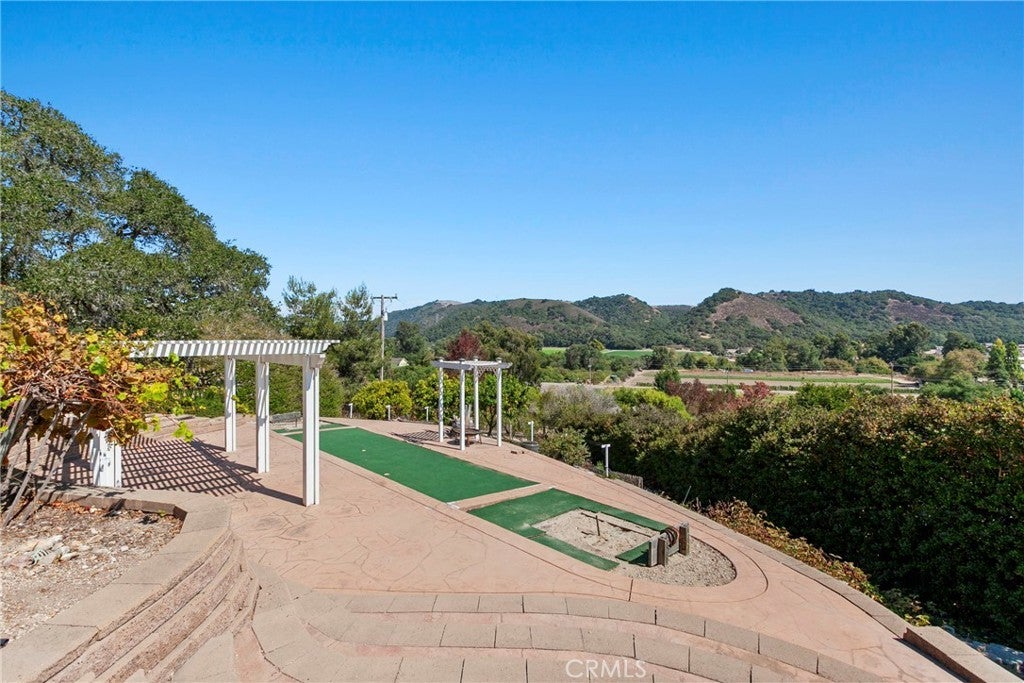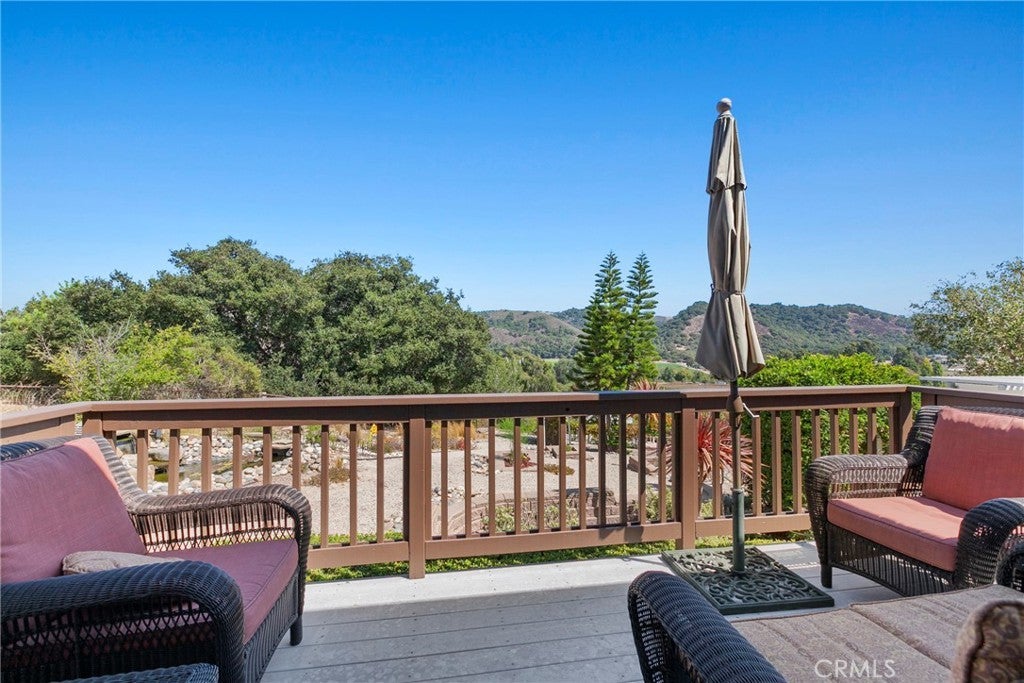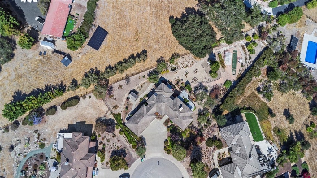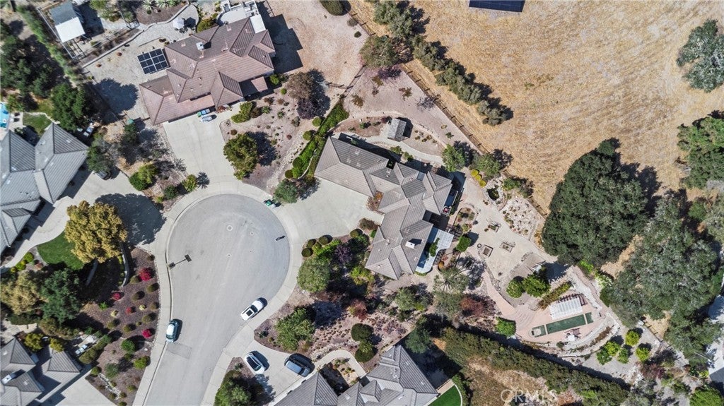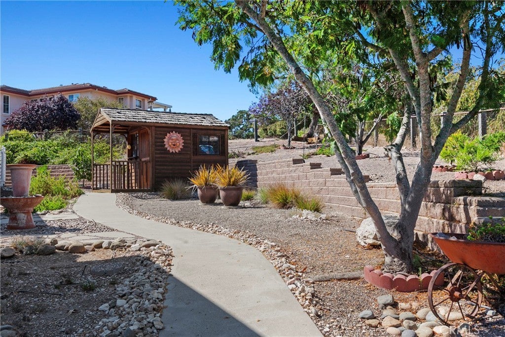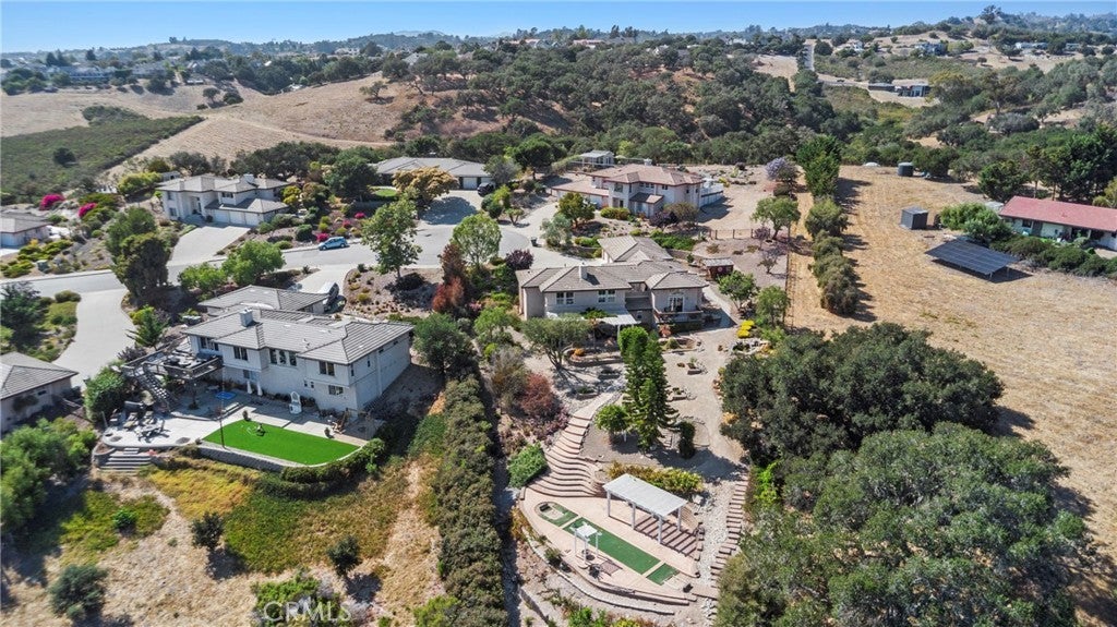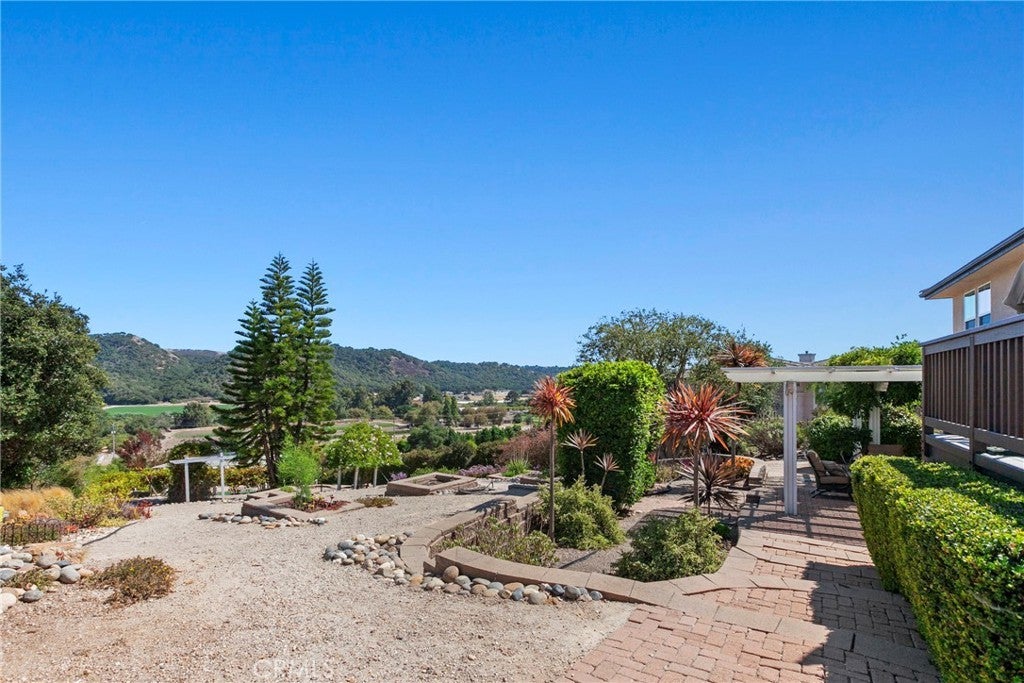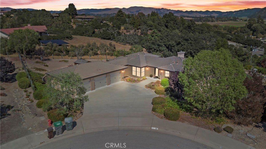 Nestled at the end of a quiet cul-de-sac in the desirable Canyon Crest - The Ranches community, this light-filled Arroyo Grande residence offers privacy, space, and sweeping views of the East Arroyo Grande Valley. Set on just over half an acre, the 3-bedroom, 2.5-bath home spans 2,216 square feet and was built in 2002, featuring a freshly painted interior, garage doors, and exterior trim that create a crisp, move-in-ready impression. The multilevel floor plan is thoughtfully designed for both everyday living and entertaining. Upon entry, you’re welcomed into a comfortable living area filled with natural light. To the right, a conveniently located half bath adds ease for guests. On this same level, the generous primary suite serves as a peaceful retreat, offering lovely valley views, a walk-in closet, and an en suite bathroom complete with dual vanities, a soaking tub, and a private water closet. Just a few steps down from the entry, the home opens to a stunning formal dining room and a bright, airy kitchen adorned with tastefully tiled countertops and backsplash. The adjacent laundry room features under-counter appliances with cabinetry above for added storage. Beyond the kitchen, a second spacious living area showcases beautiful hardwood floors and sliding glass doors that lead to a patio with expansive views, ideal for seamless indoor-outdoor living. The lower level hosts two well-appointed secondary bedrooms and a full bathroom, offering comfort and separation for family or guests. From this level, step outside to the beautifully landscaped, terraced backyard, an outdoor oasis designed to be enjoyed year-round. Highlights include a pergola patio, hot tub, tranquil fish pond, a charming garden shed, built-in irrigated garden beds producing a variety of flowers and produce, a putting green, and a horseshoe toss area. Completing the property is a large driveway and a three-car garage, providing ample parking and storage. Surrounded by natural beauty yet conveniently located just 1.5 miles from downtown Arroyo Grande, with Strother Park within walking distance, this hillside home offers the perfect balance of peaceful residential living and convenient access to local shops, dining, and recreation. Schedule a private showing and experience the space, views, and setting of this Arroyo Grande retreat for yourself.