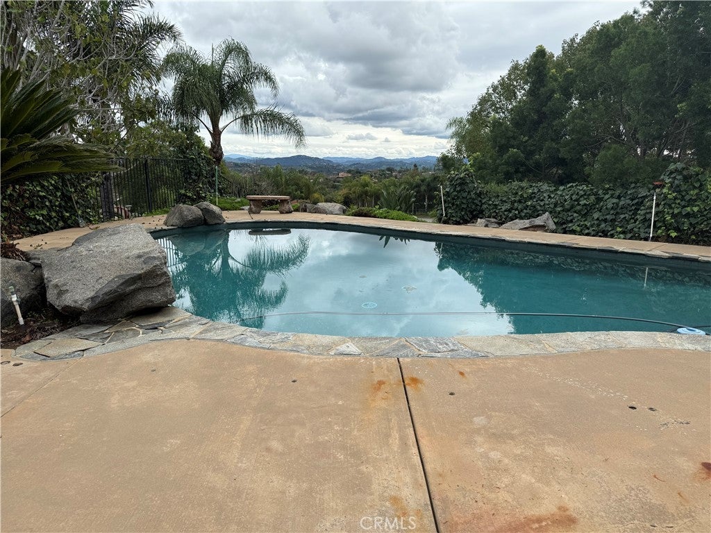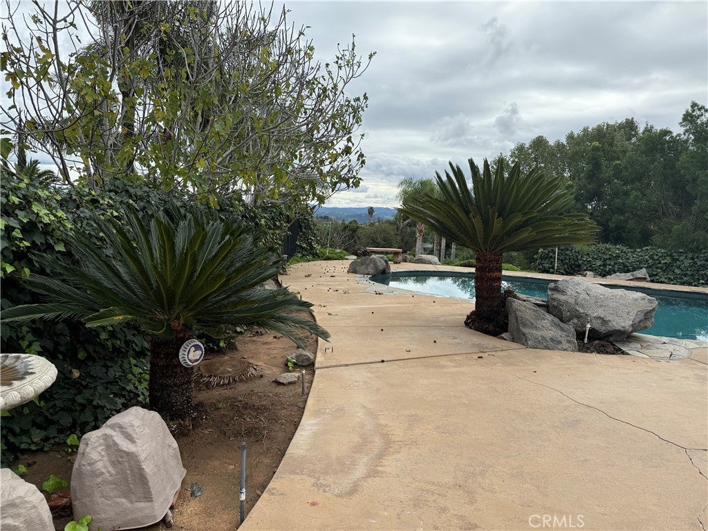Welcome to 130 Orvil Way — a serene retreat perched at the top of a cul-de-sac in the heart of Fallbrook. This traditional-style 3-bedroom, 2-bathroom home offers 2,374 sq ft of comfortable living space on a private and fully landscaped 1.11-acre lot with breathtaking eastern mountain views. Tucked away in a peaceful, hilltop setting, this home delivers the perfect blend of privacy, nature, and convenience. Step outside to your own resort-style backyard with a sparkling in-ground pool surrounded by boulders, mature palm trees, and lush greenery. Enjoy morning coffee or evening wine with panoramic views that stretch across the rolling hills of Fallbrook. Inside, warm hardwood flooring flows throughout the living areas, anchored by a striking floor-to-ceiling stone fireplace in the family room. Large windows frame peaceful garden views and bathe the space in natural light. The kitchen features solid wood cabinetry, granite countertops, a gas cooktop, stainless steel appliances, and double ovens — perfect for hosting family and friends. Thoughtful extras include RV hookups, a long private driveway, and multiple fruit trees scattered across the grounds. Whether you're entertaining poolside, cultivating your own garden, or simply soaking up the tranquil ambiance, this home offers the ultimate in laid-back Fallbrook living. If you're seeking a Fallbrook home with views, space to breathe, and timeless charm — this is the one you've been waiting for.