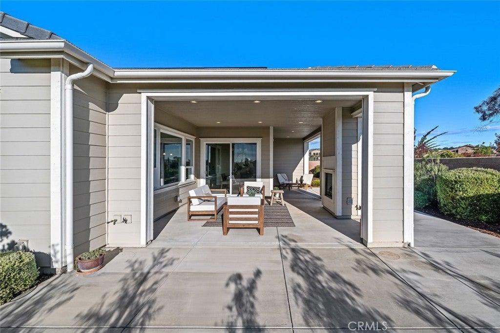 This elegant, coastal cottage-style home enjoys one of the most coveted settings—framed by open space on three sides, with an expansive park and vineyard just across the way and sweeping views of distant dunes and tree-lined horizons behind. A generous entry courtyard sitting area creates an immediate sense of welcome, leading into 2,696 sq ft of refined, open-concept living. Inside, desirable white oak hardwood floors set an elegant yet relaxed tone, guiding you into the light-filled living and dining spaces. The gourmet kitchen takes center stage with soft-close shaker cabinetry, quartz countertops, double-oven, an oversized island, and a walk-in pantry complete with a 50-bottle wine fridge. A well-designed "Smart Space" utility room offers laundry and a built-in office with desk area to further enhance your everyday comfort. Enjoy the restful, primary suite featuring a spa-inspired bath with stone-slab counters, double vanity, walk-in shower and a spacious walk-in closet. Beyond the main living areas, an oversized, air-conditioned guest casita awaits—accessible through its own private entrance and appointed with a generous sitting area, bedroom, and en-suite bath. Perfect for visiting friends, in-laws, creative pursuits, or simply curling up with a good book, this wonderfully flexible space enhances the home’s livability and offers endless possibilities. An expansive covered patio and outdoor fireplace invite year-round enjoyment of the tranquil backyard and scenic vistas. The home’s thoughtful design also includes a 3-car garage, whole-house water filtration, keyless entry door, garage cabinetry, included washer, dryer and refrigerator and solar energy. The result is a sanctuary where thoughtful design and breathtaking surroundings come together in perfect harmony.